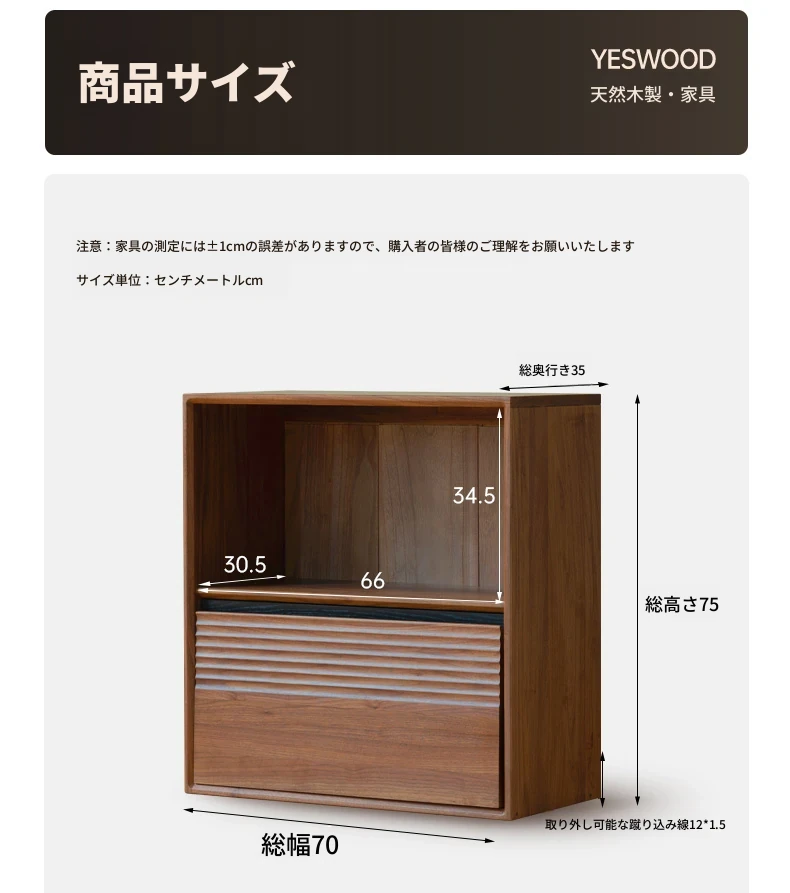 (南洋金檀木クルミ色)0.7メートル単引き出しオープンキャビネット+棚板*3(700*350*750mm)