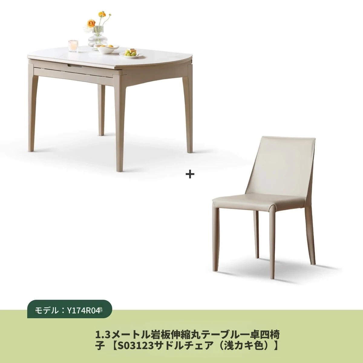 (暖灰)0.9-1.4メートル水云纱岩板一卓四椅(S03123 サドルチェア(ライトカーキ))Y174R04