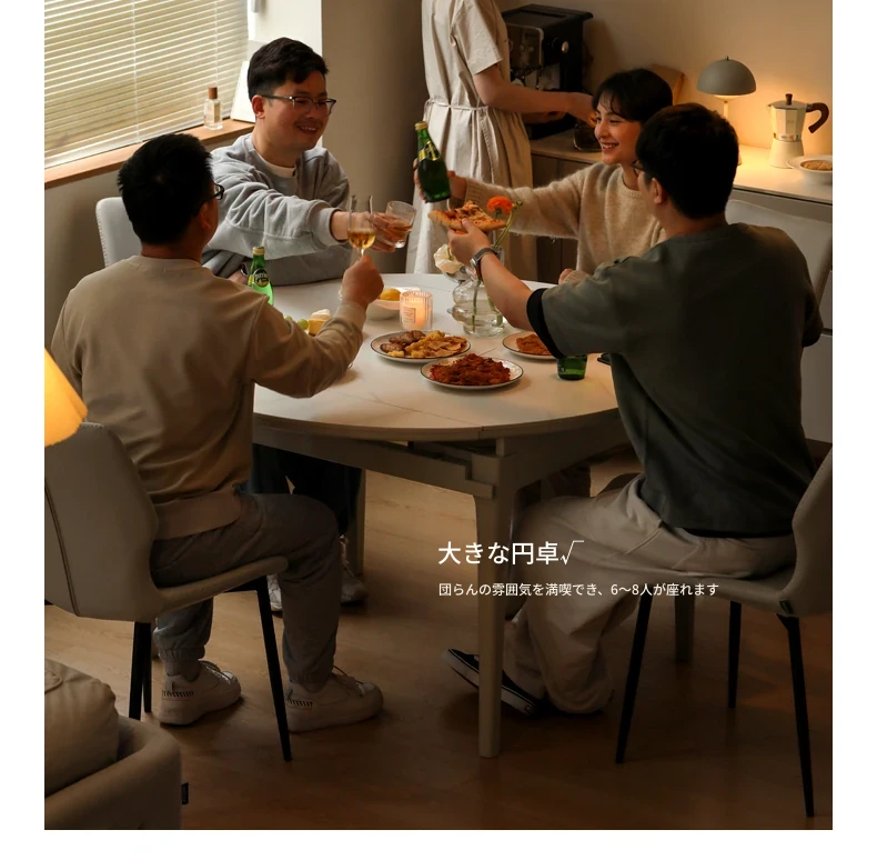 源氏木語の高級感漂う伸縮式回転テーブル|洗練されたデザインの天然木製ダイニングテーブル|省スペース設計で小さなお部屋にもぴったり!折りたたみ式なので、使わない時もスッキリ収納可能。