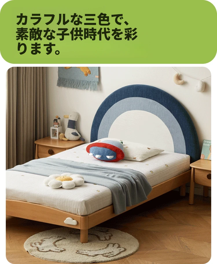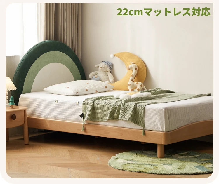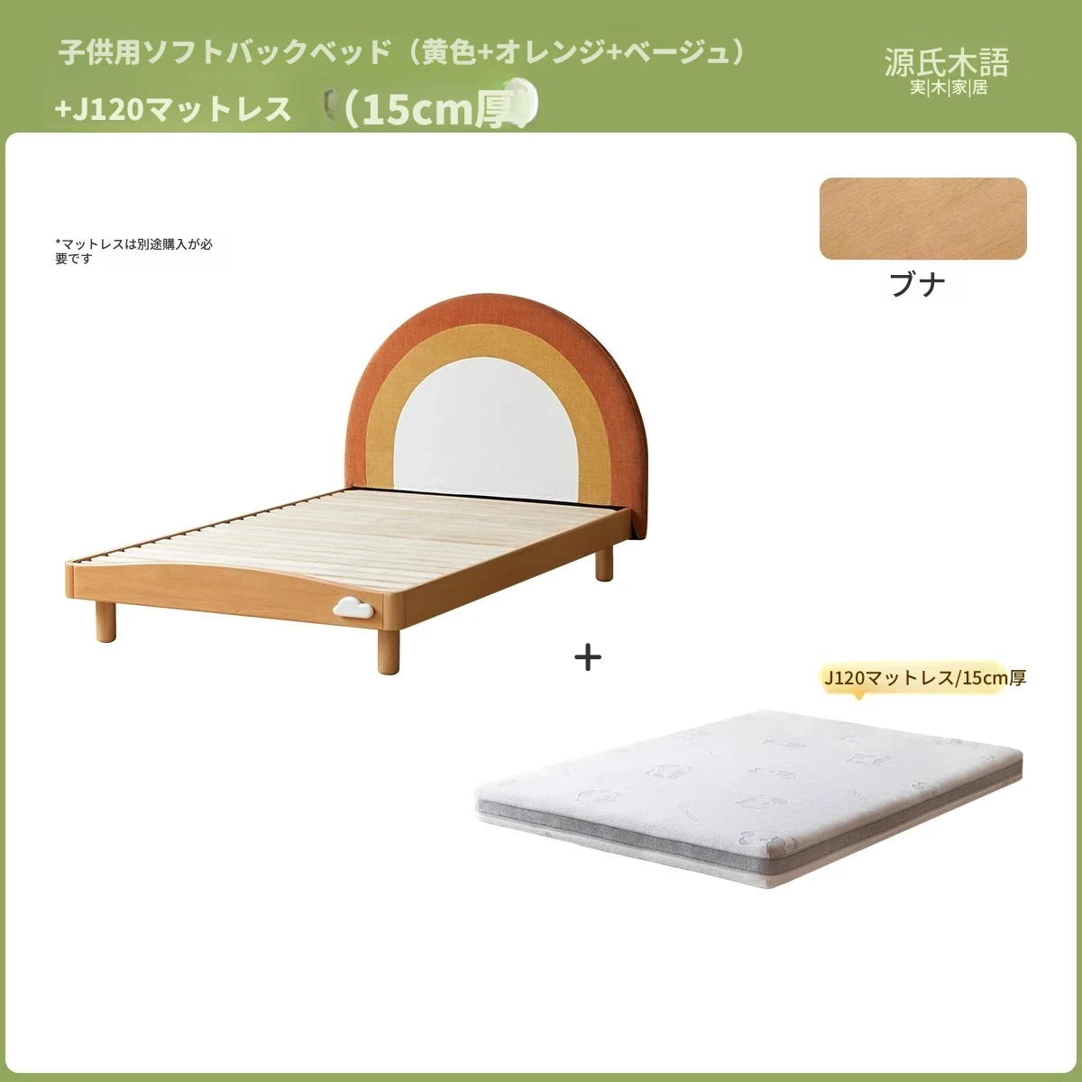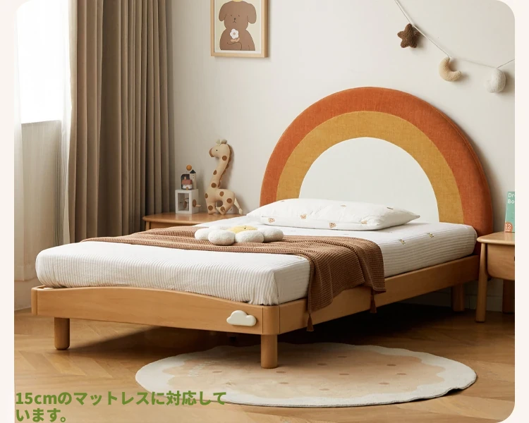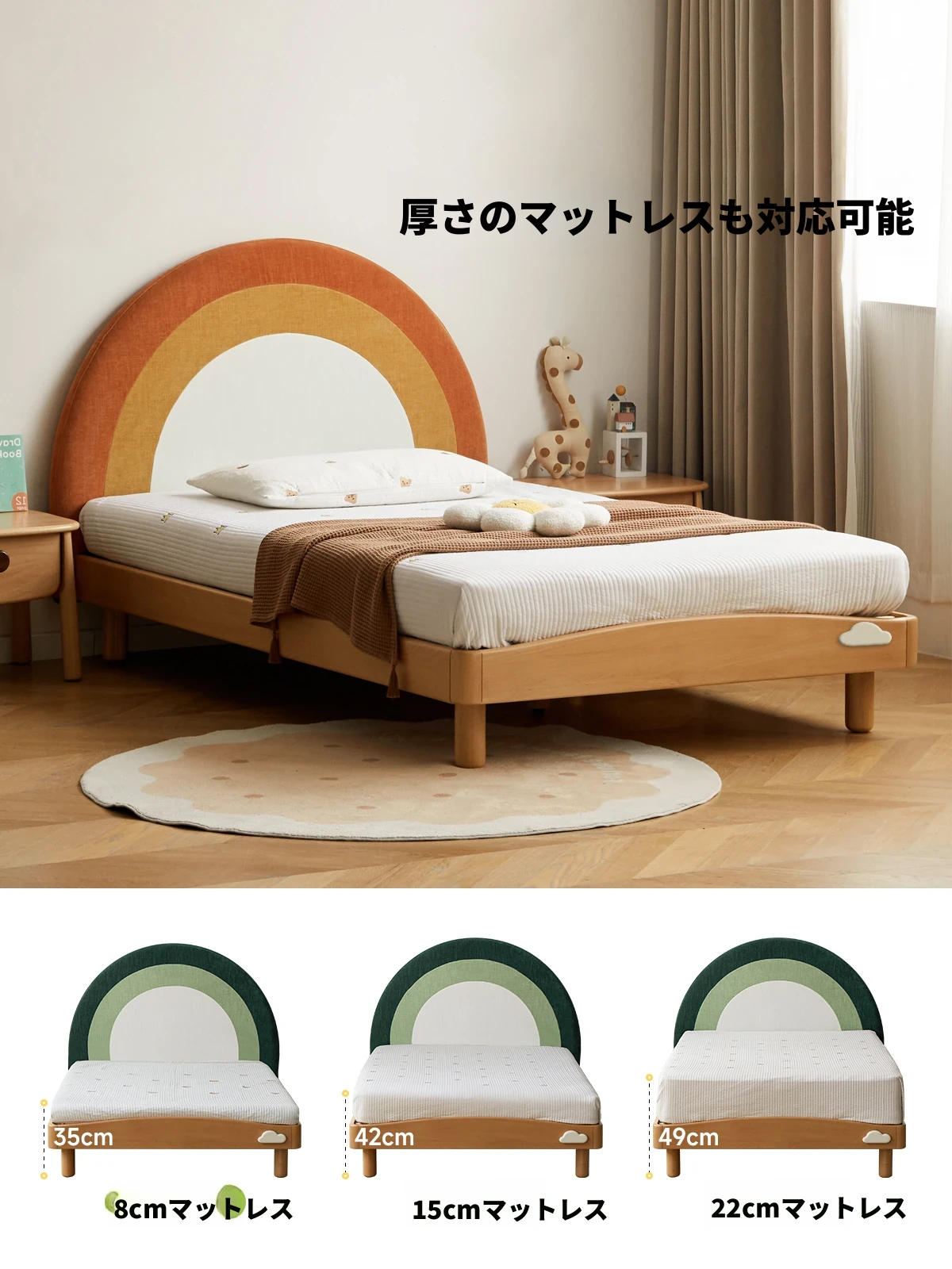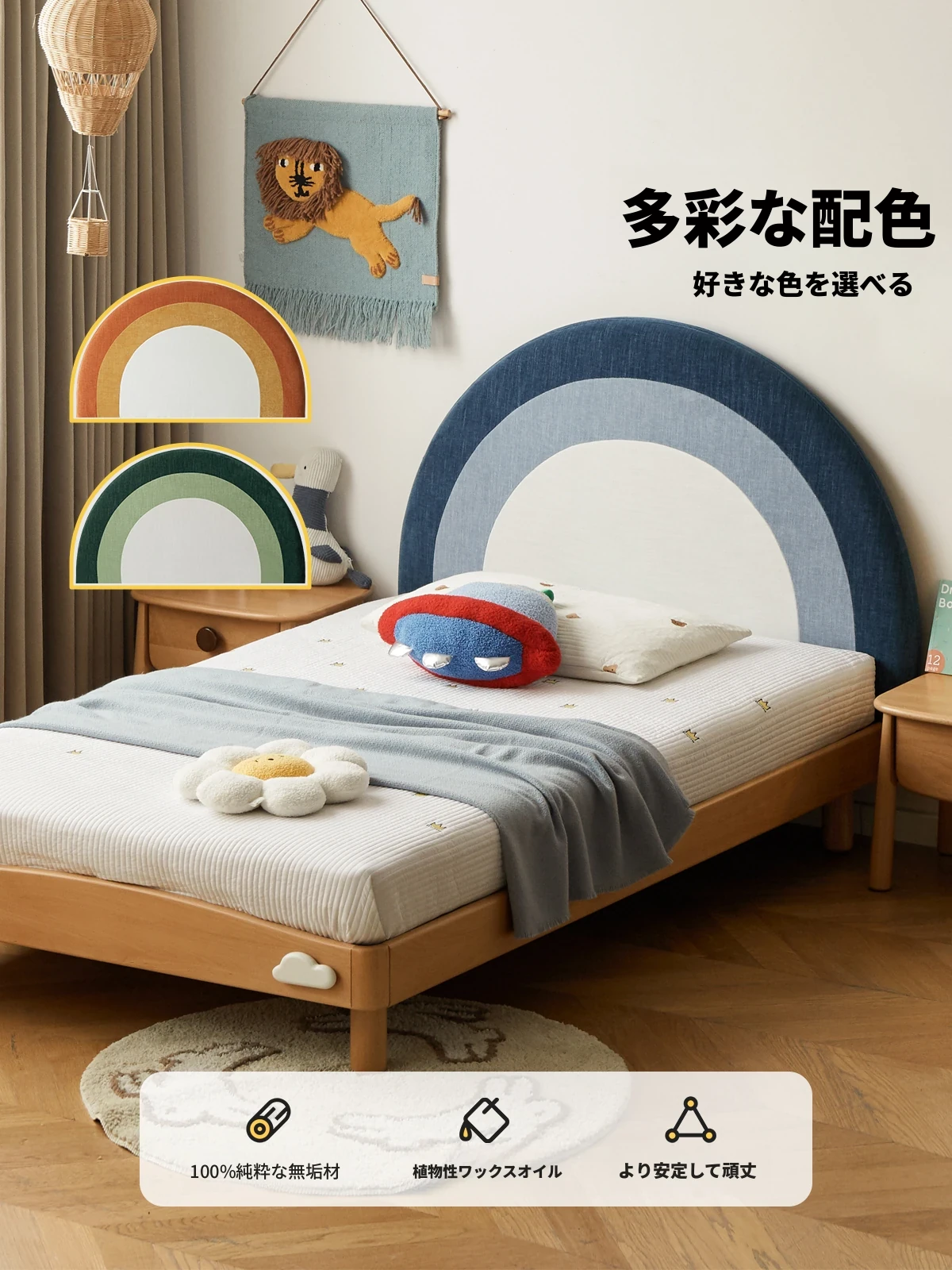 源氏木語 モダンシンプルな無垢材 子供用ベッド モンテッソーリスタイル おしゃれな虹のプリンセスベッド 男の子向けシングルベッド