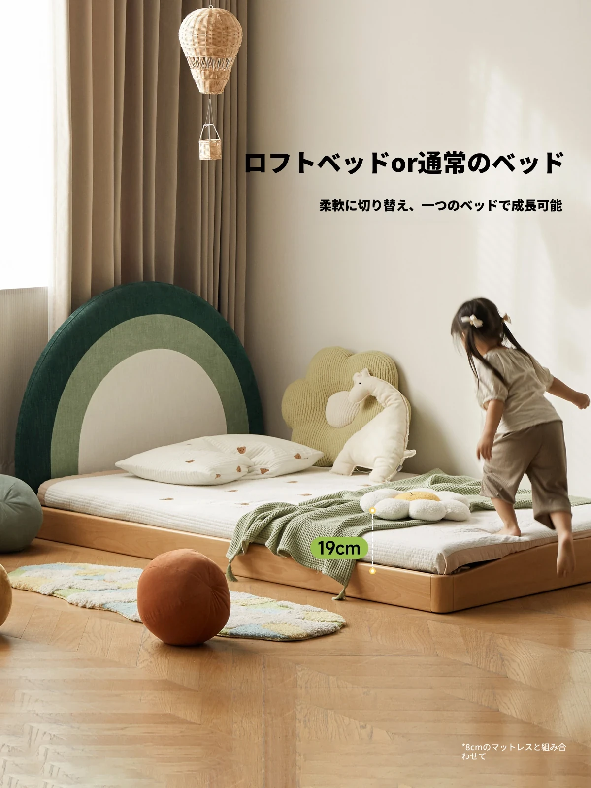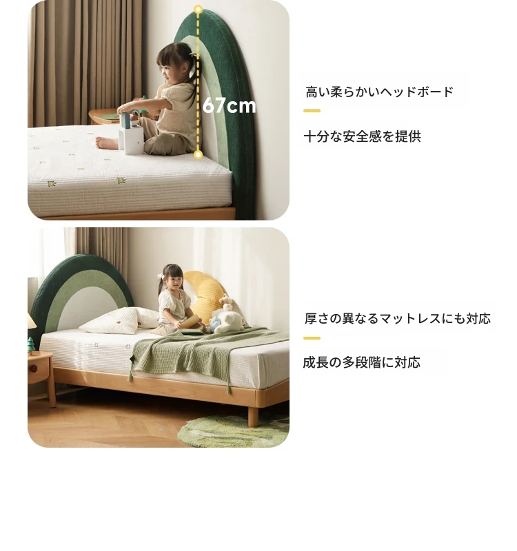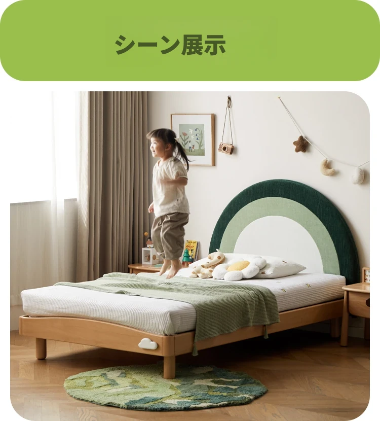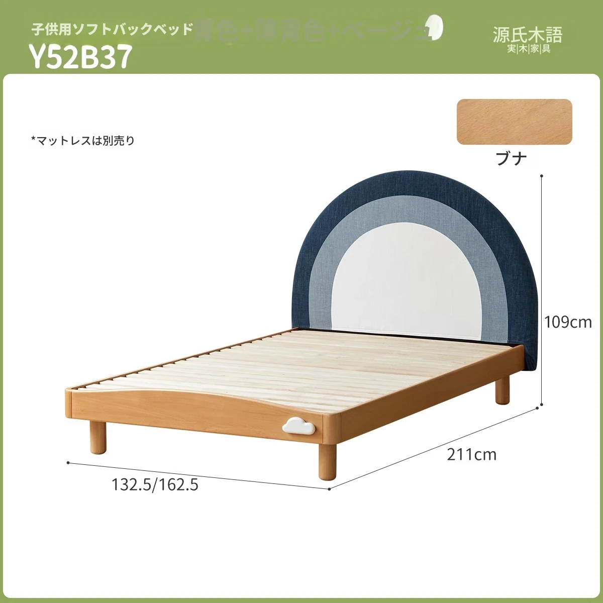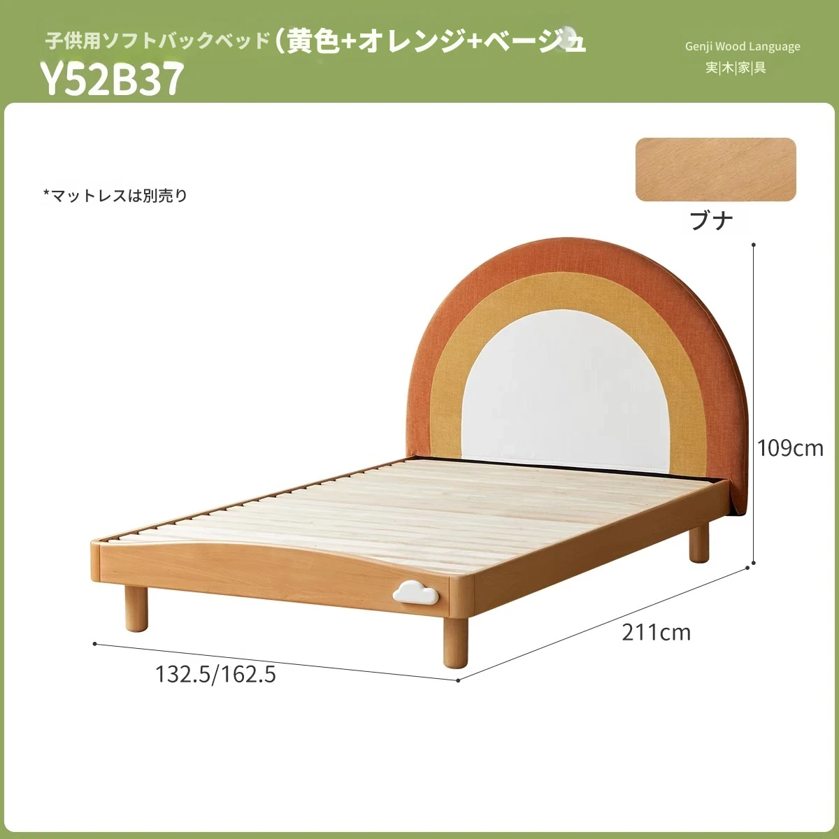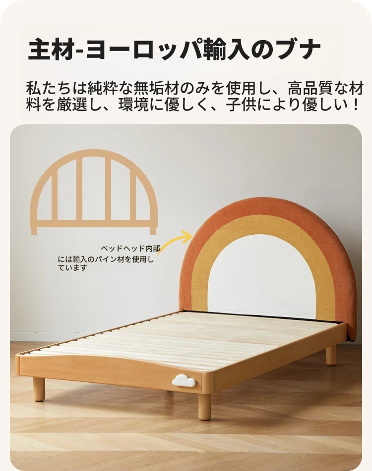 源氏木語 モダンシンプルな無垢材 子供用ベッド モンテッソーリスタイル おしゃれな虹のプリンセスベッド 男の子向けシングルベッド