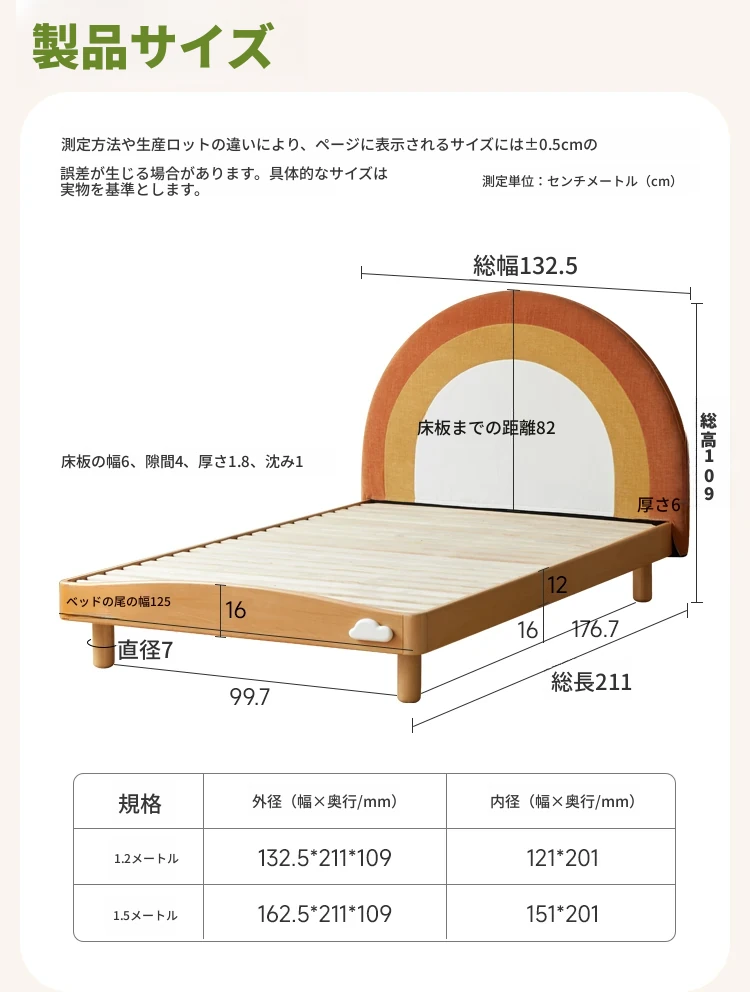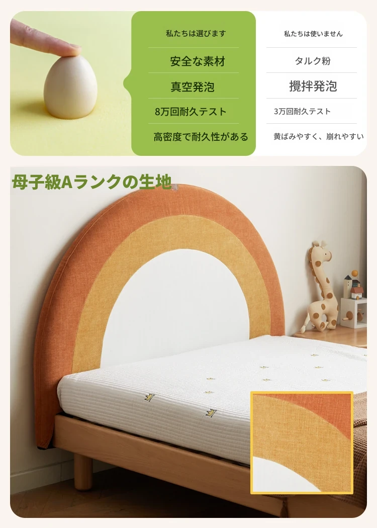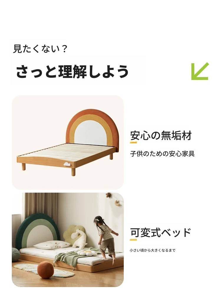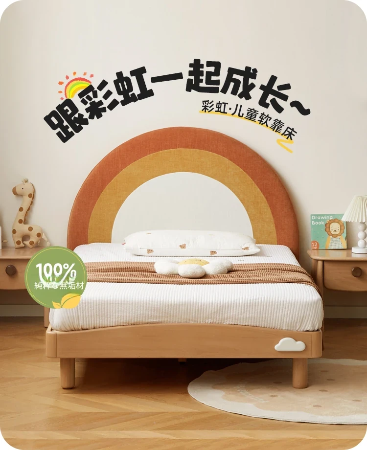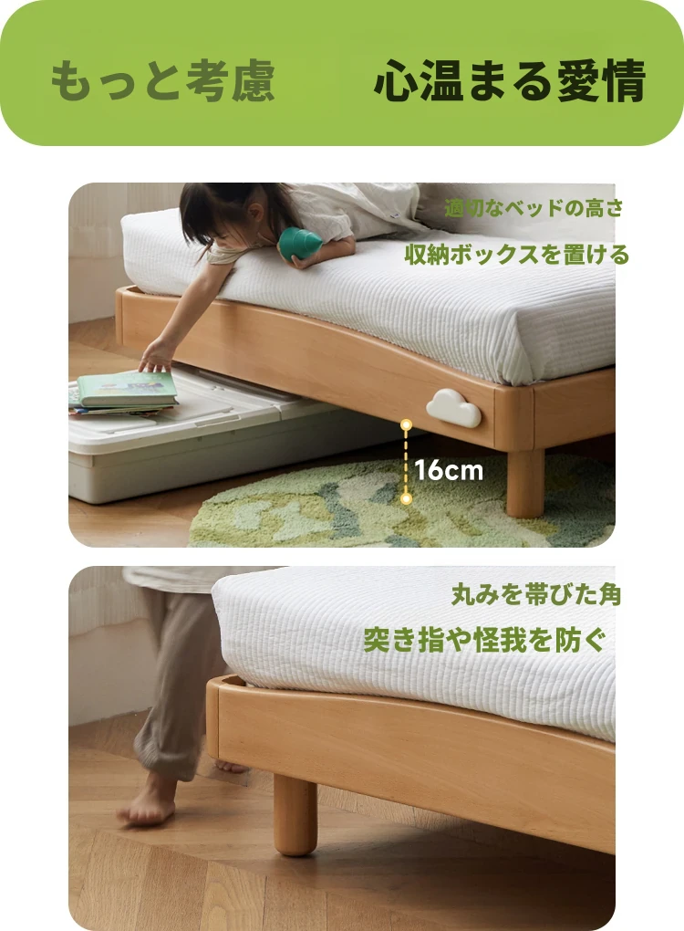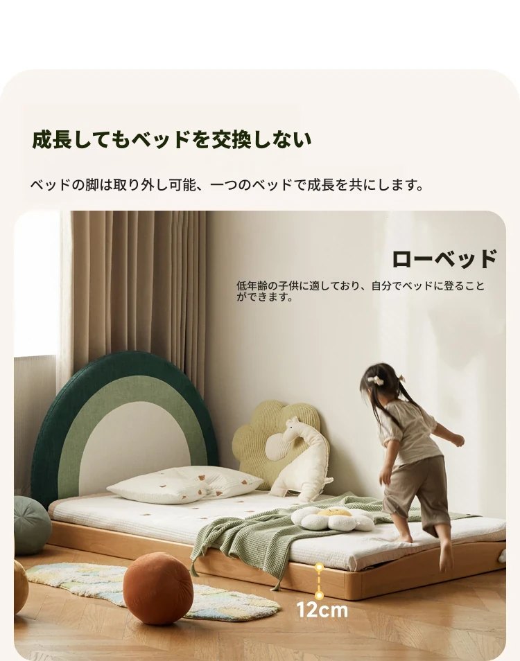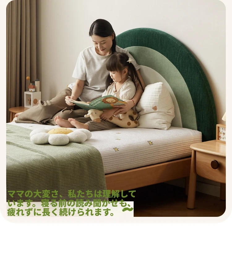 源氏木語 モダンシンプルな無垢材 子供用ベッド モンテッソーリスタイル おしゃれな虹のプリンセスベッド 男の子向けシングルベッド