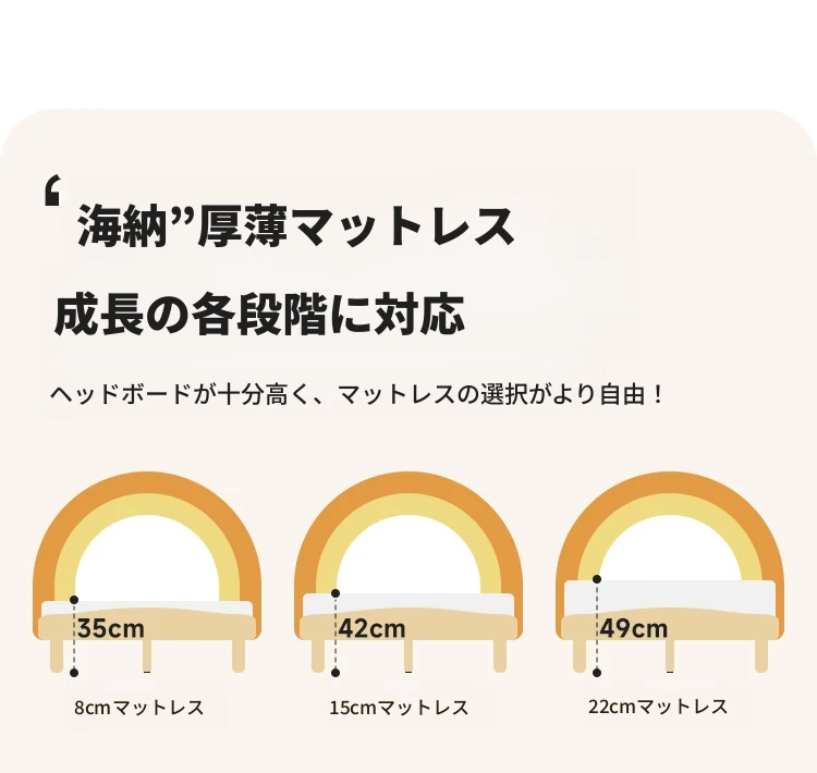 子供用ソフトバックベッド(黄色+オレンジ+ベージュ)+マットレス(15cm厚J120やや硬めH2)Y52B37