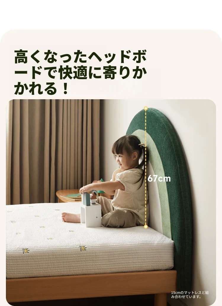 子供用ソフトバックベッド(緑色+薄緑色+ベージュ)+マットレス(15cm厚J120やや硬めH2)Y52B37