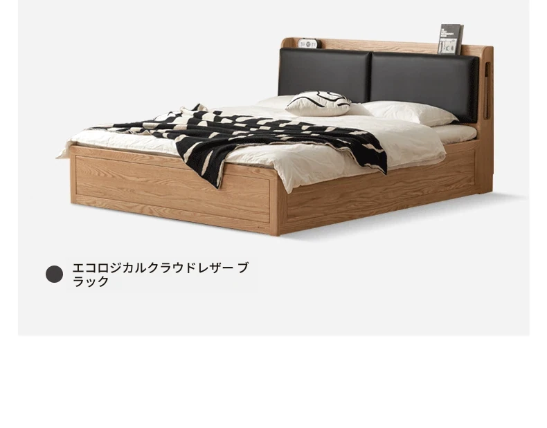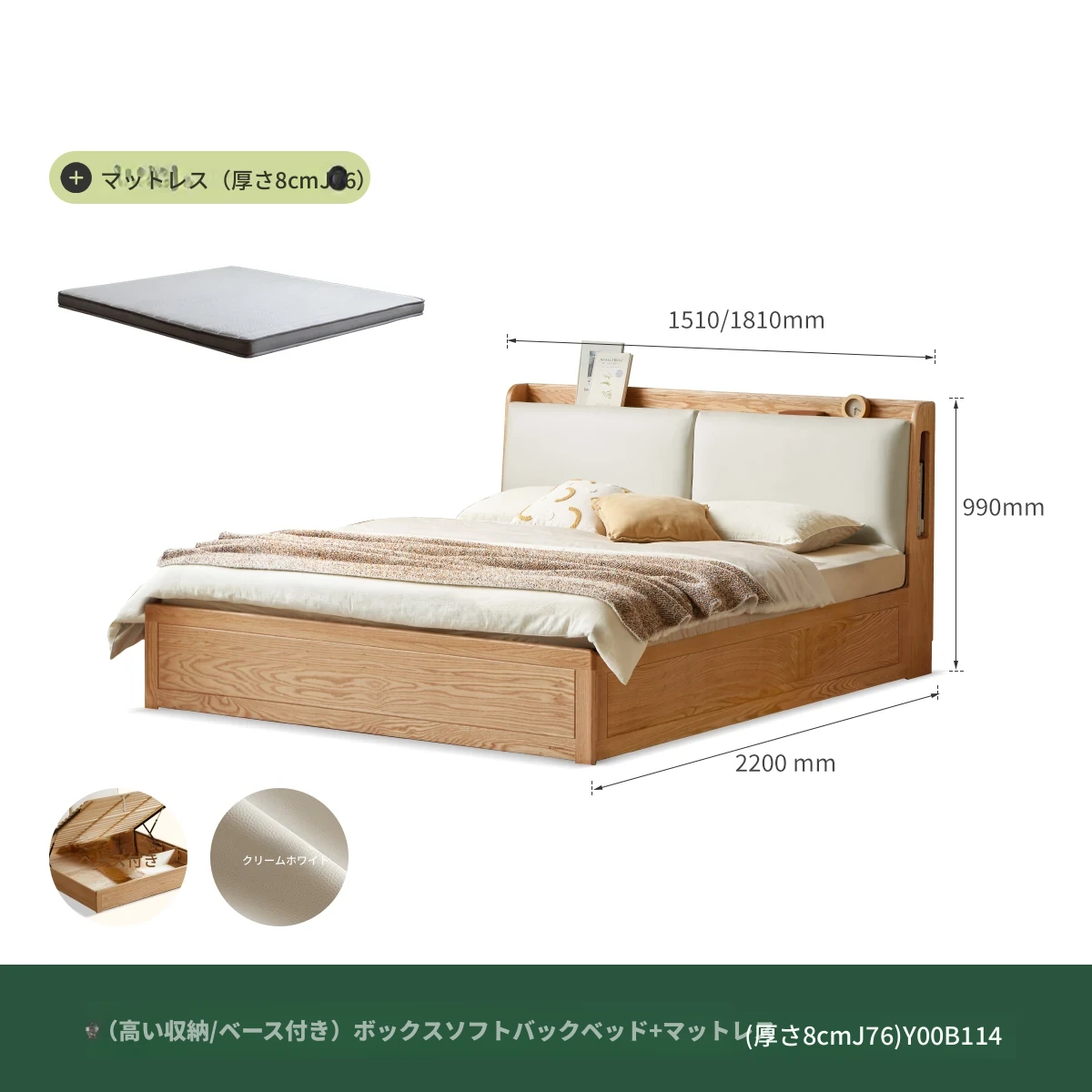源氏木语高品質天然木材製マルチファンクションボックスベッド|主寝室向け|先進的なテクスチャーのソフトバック|収納力抜群のオークダブルベッド|おしゃれで機能的な収納ベッドをお探しの方に最適【送料無料】