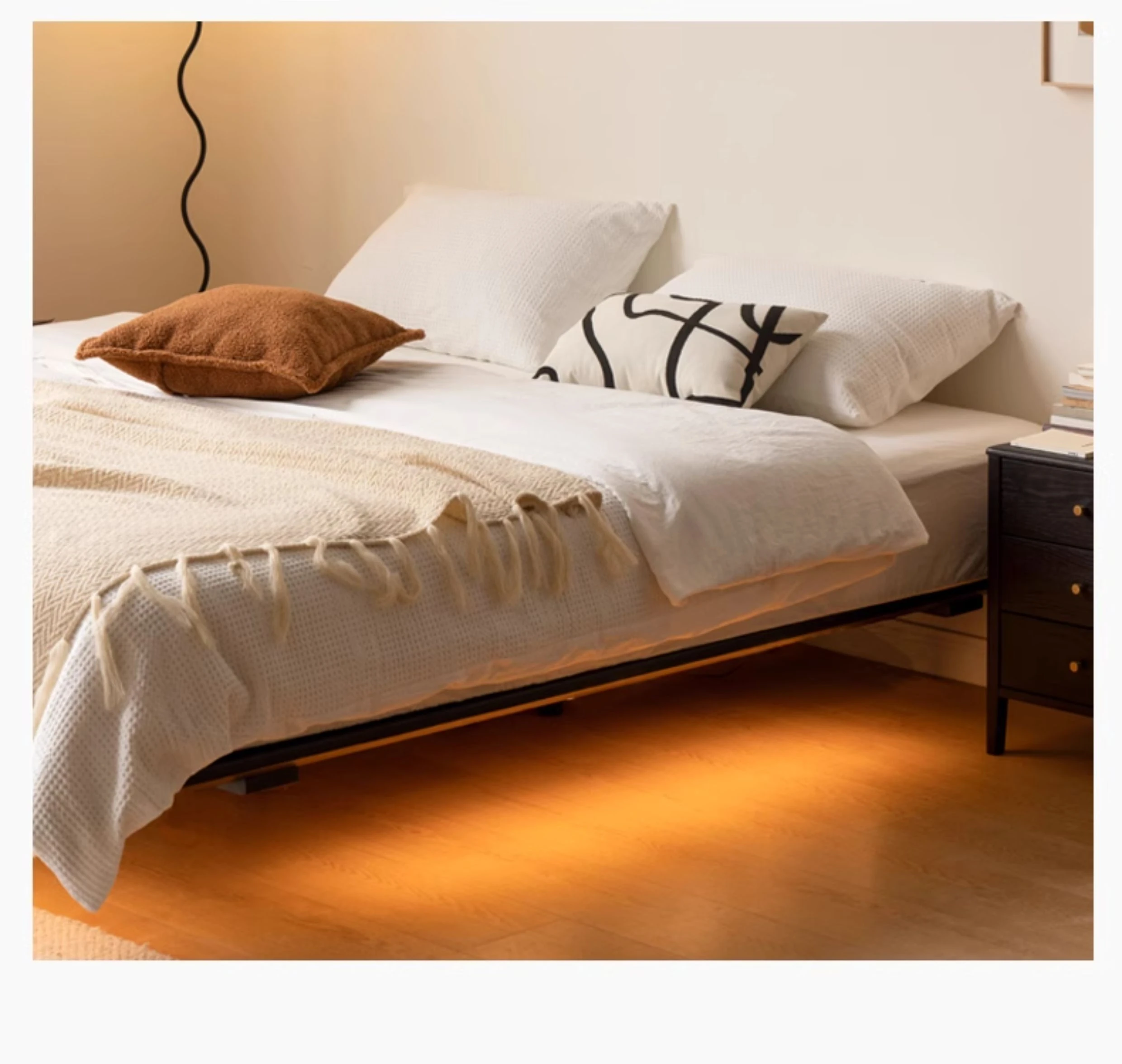 源氏木語の北欧スタイル本格木製ベッド!薄型ライト付き、ヘッドレスデザインでスペースを有効活用。タタミとの組み合わせも◎、オーク材を使用したシンプルで魅力的な大床です!