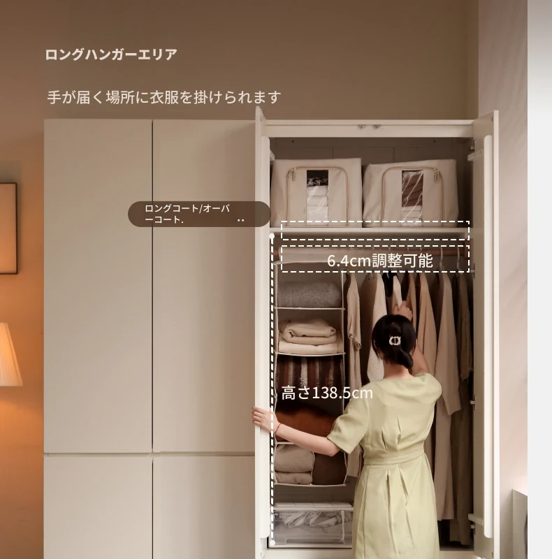 Genji Mu Yu Solid Wood Wardrobe - Creamy Style Modular Closet for Home Bedroom Storage - Elegant White Organizer Cabinet