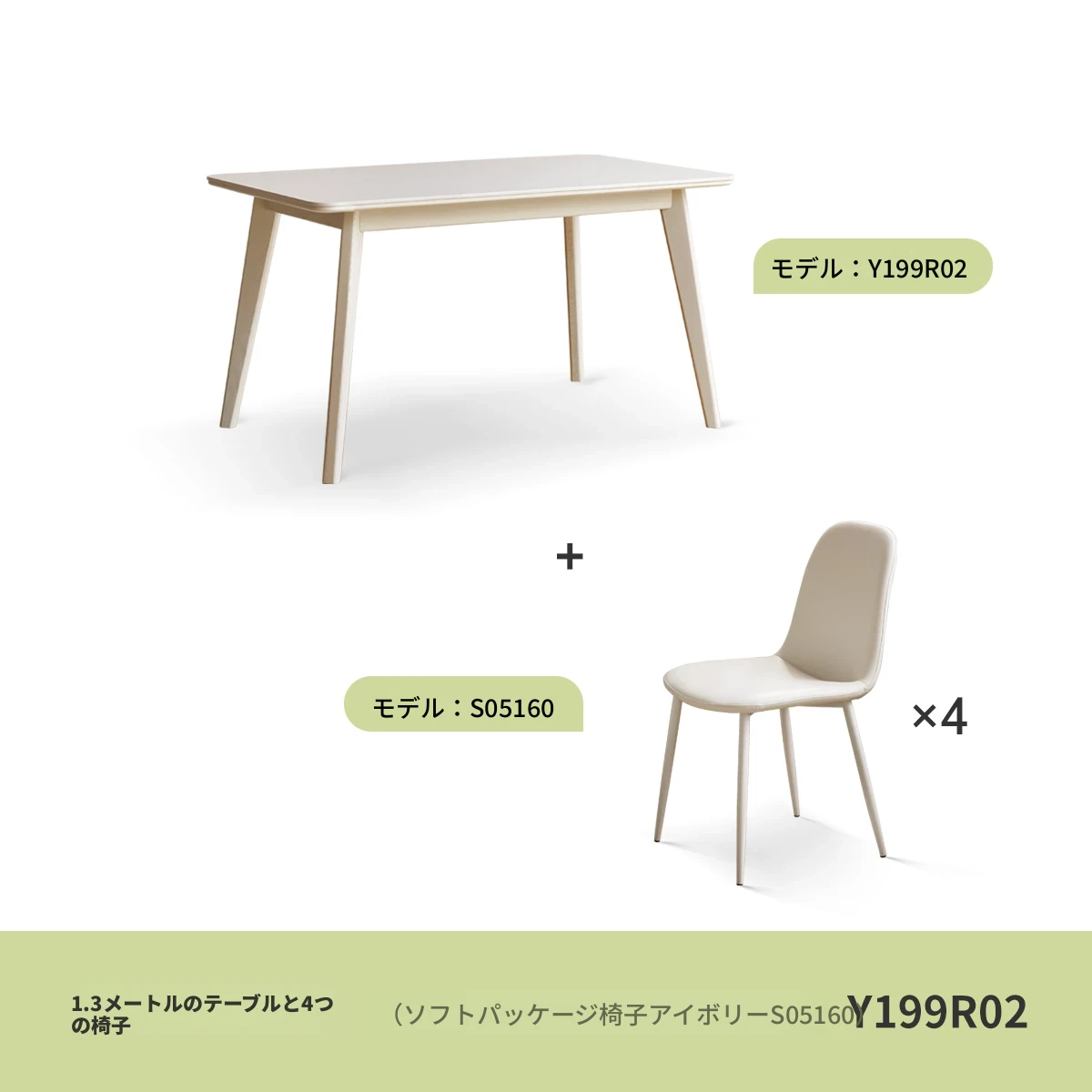 源氏木语の天然岩板ダイニングテーブル|クリーミーホワイトの無垢材で、小さなスペースにもぴったりの長方形デザイン|4人掛けセットで家族や友人と素敵な食事を楽しむ!
