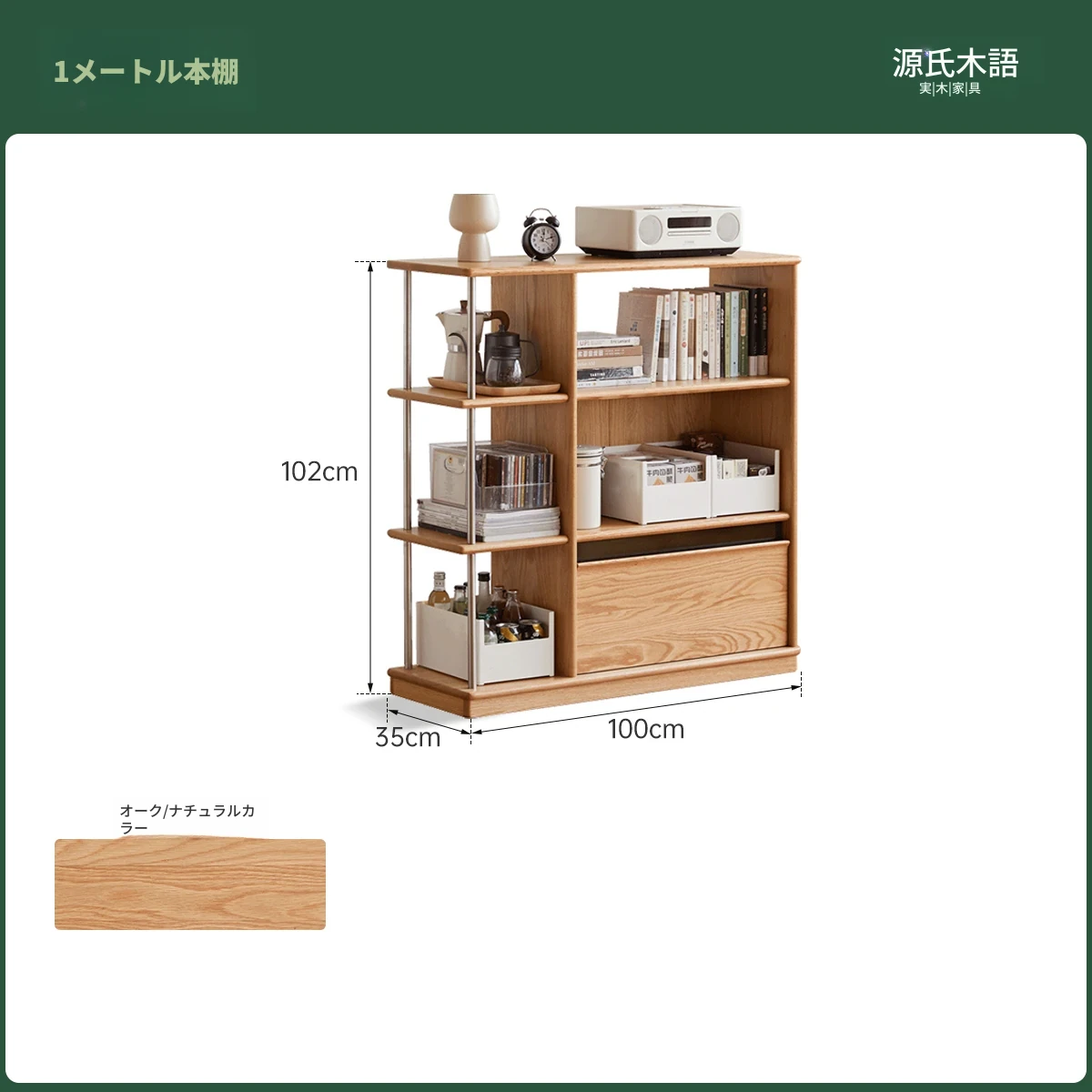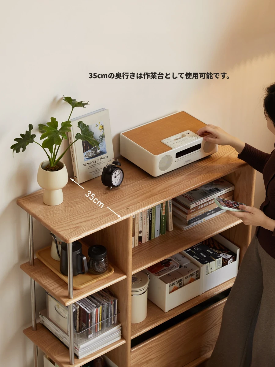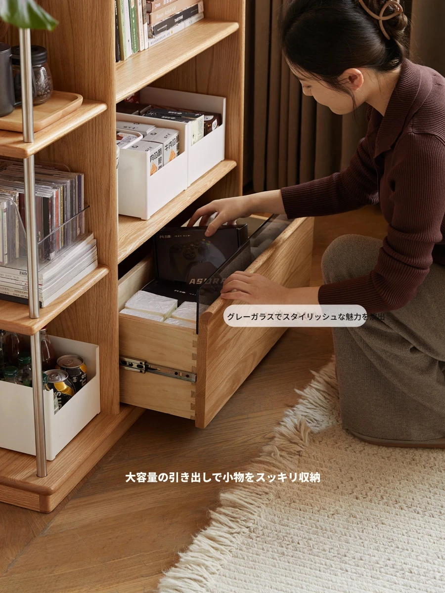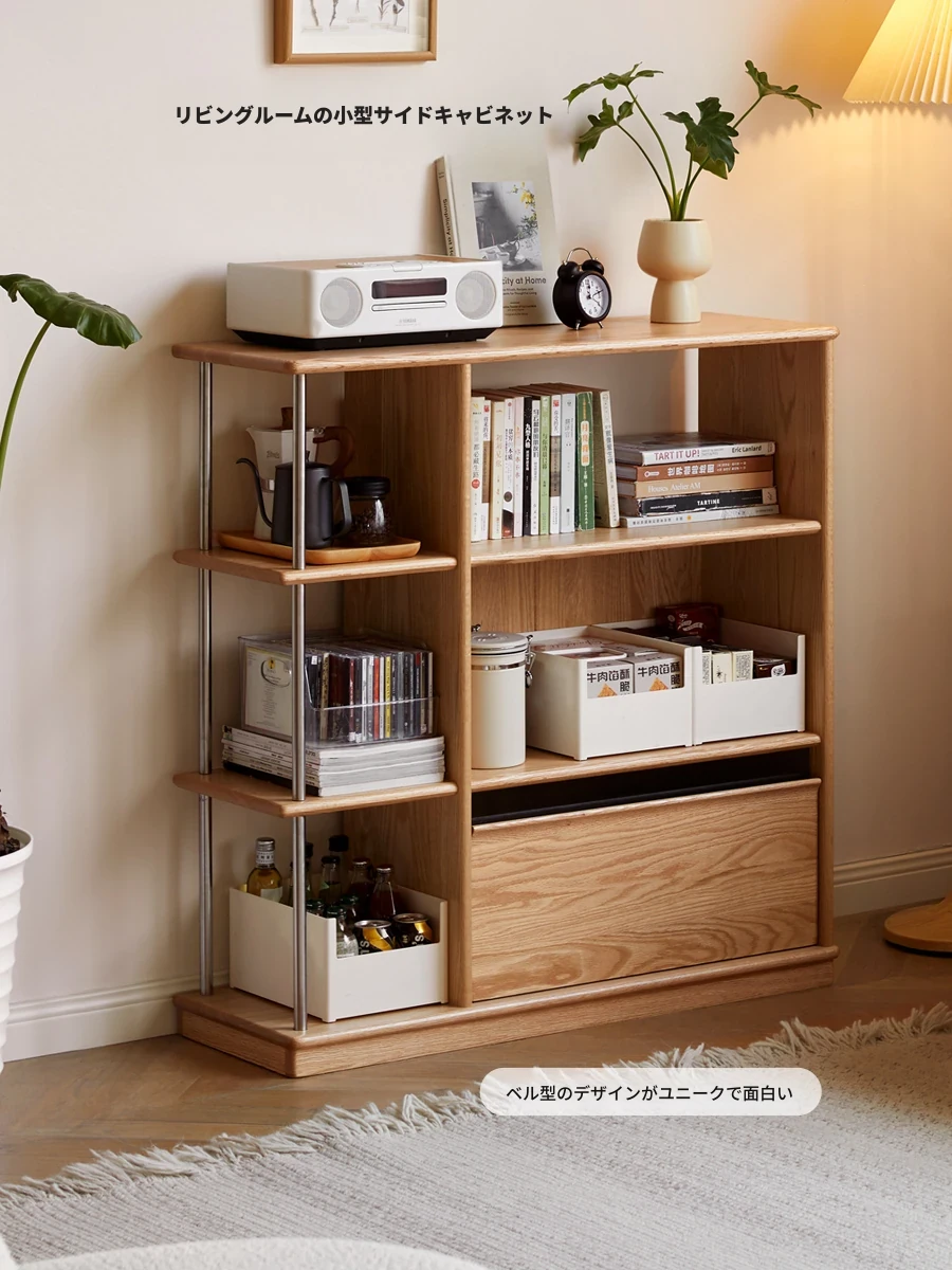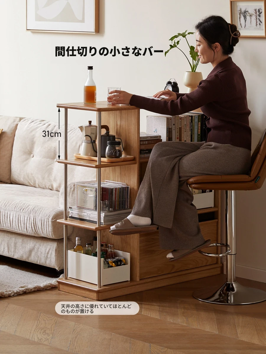 源氏木语の無垢材使用!現代的でシンプルなデザインの書棚 - 小さなお部屋やリビングにぴったりなオーク材製の間仕切りキャビネット! おしゃれで機能的な収納を実現!