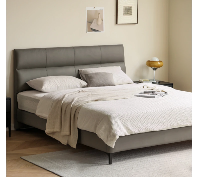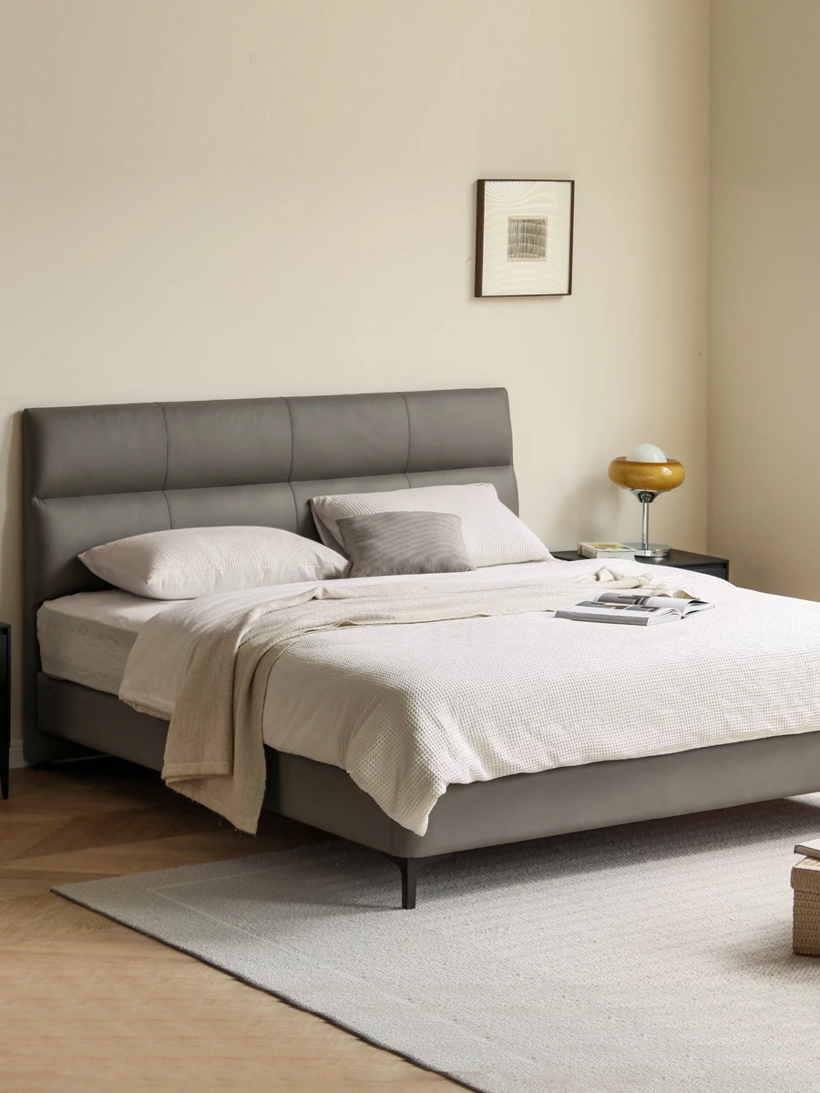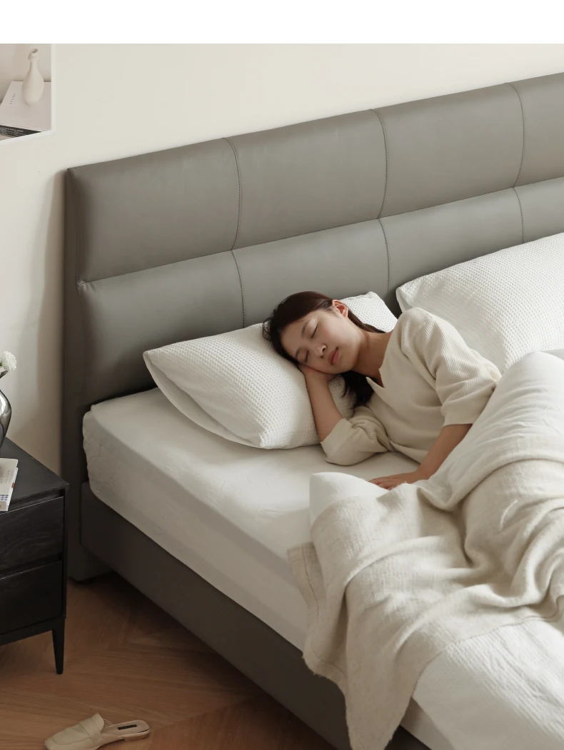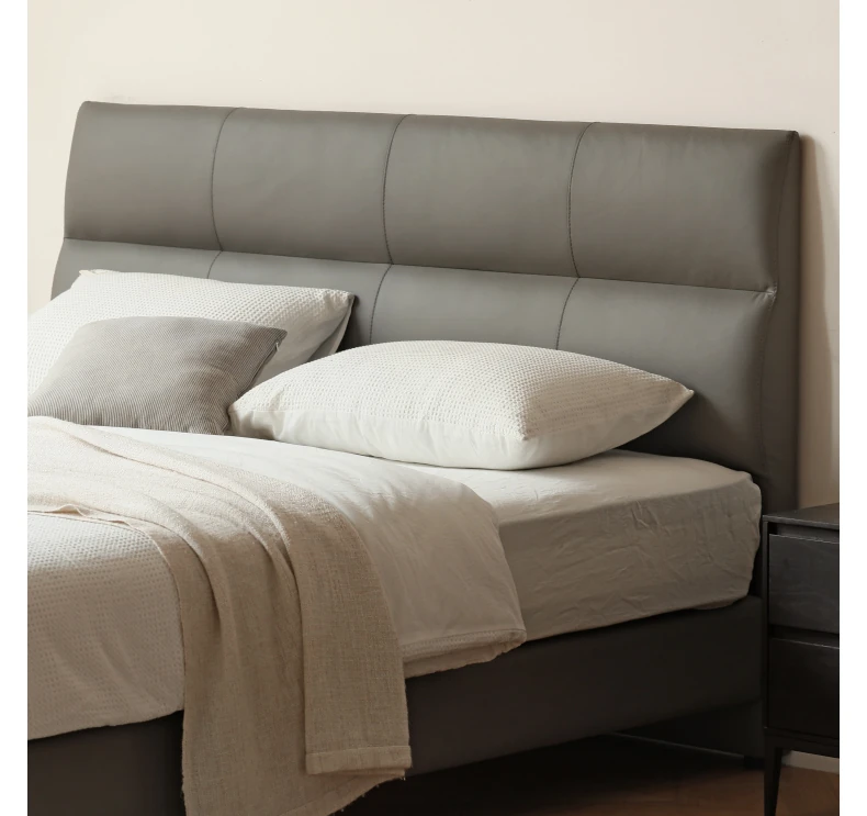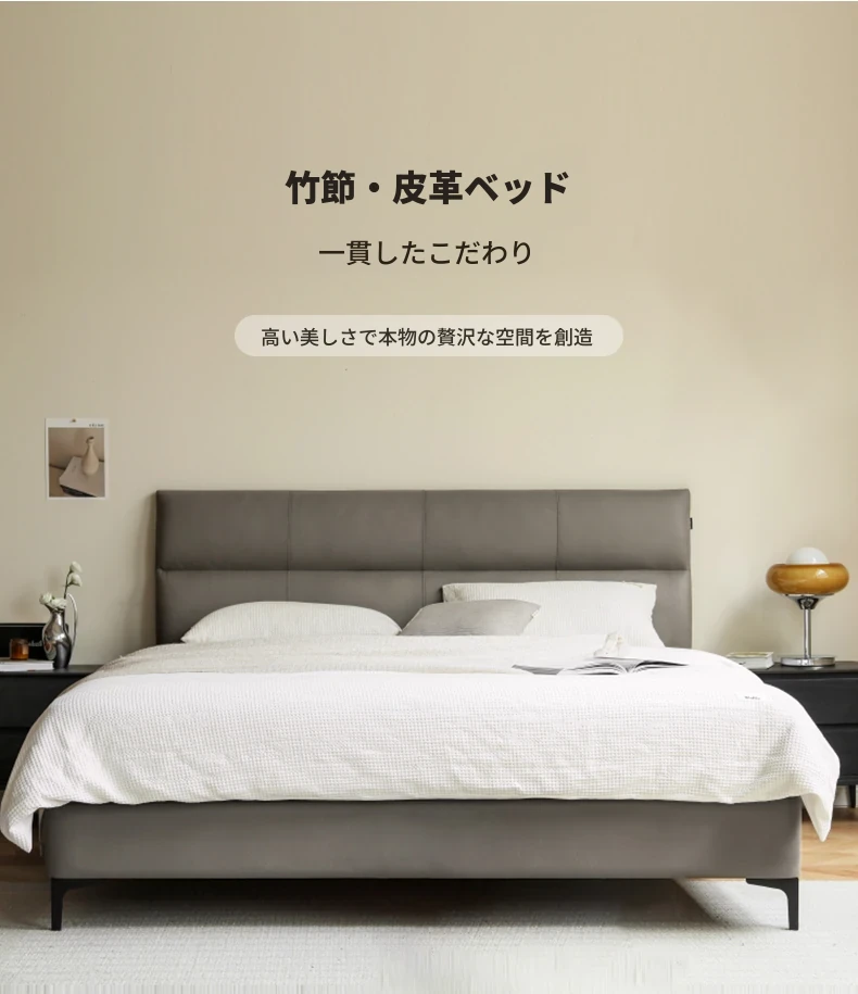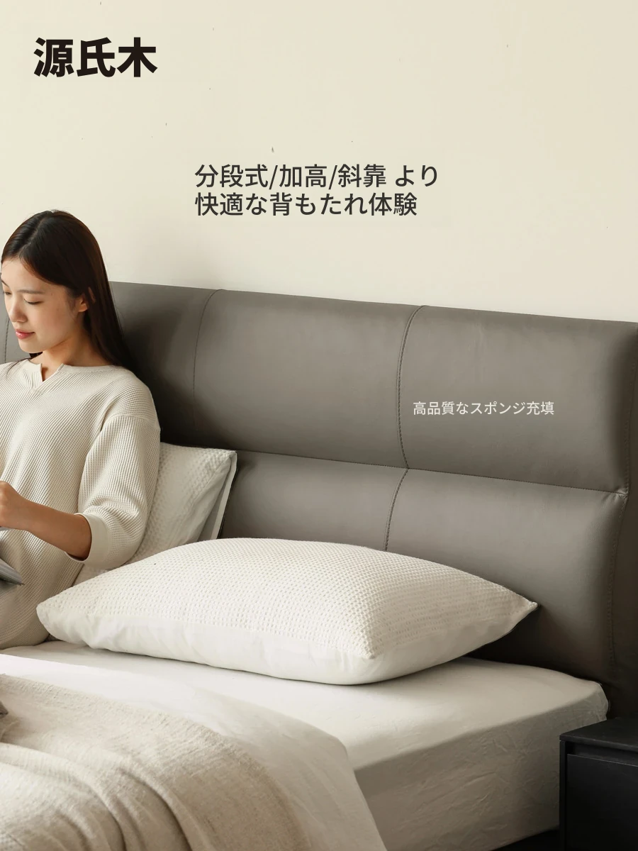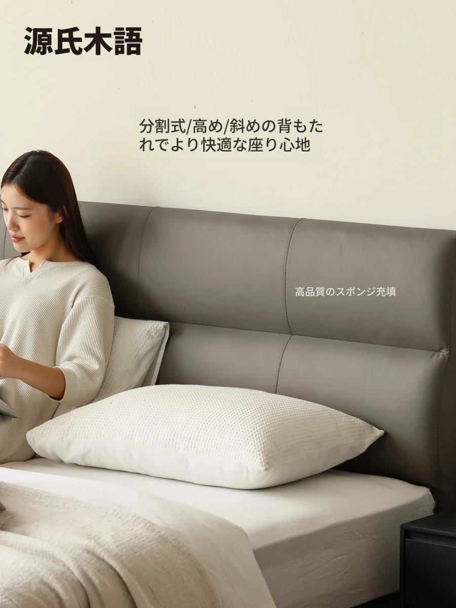 源氏木语 グレー 本革 ベッド モダン シンプル 主寝室用 ダブルベッド ラグジュアリー 高級 レザーソフト パッキングベッド 最高の眠りを提供する贅沢なデザイン!