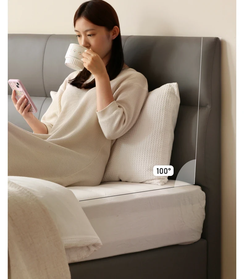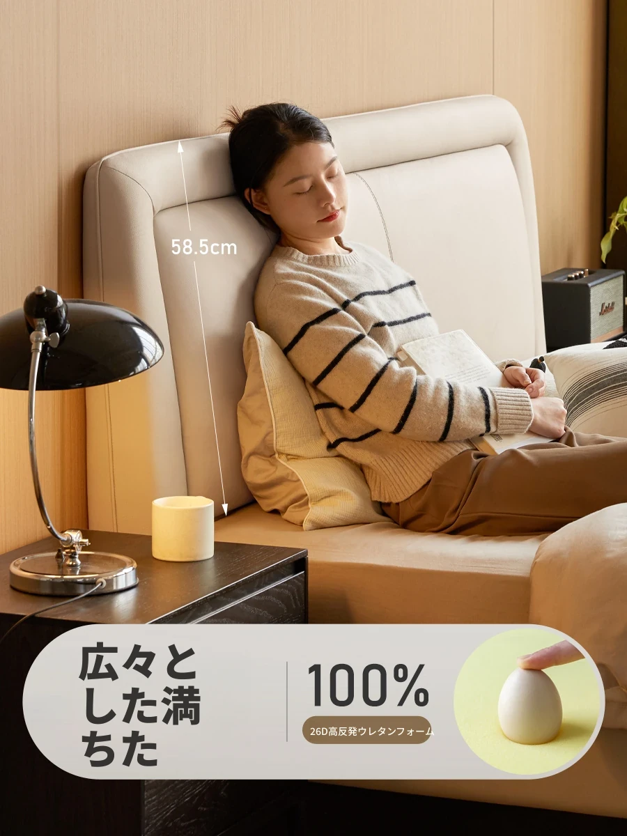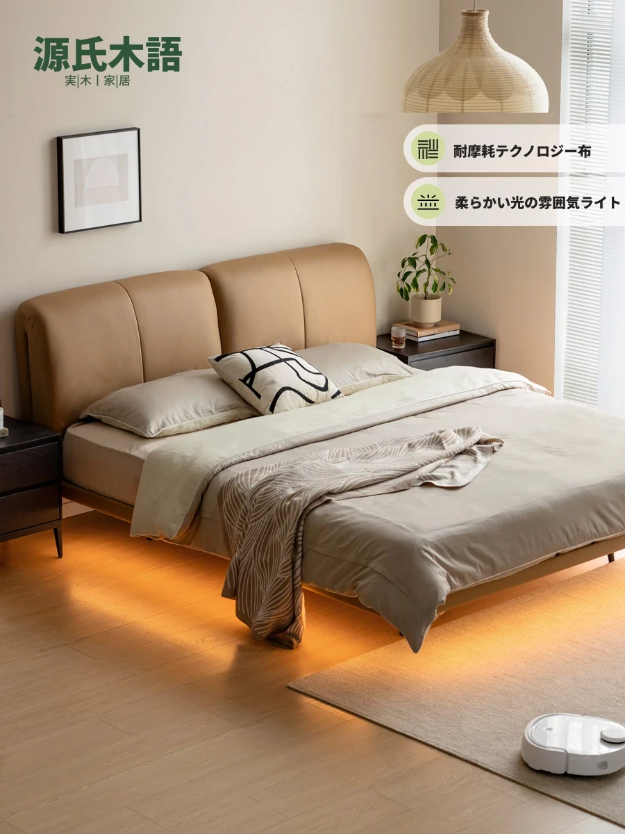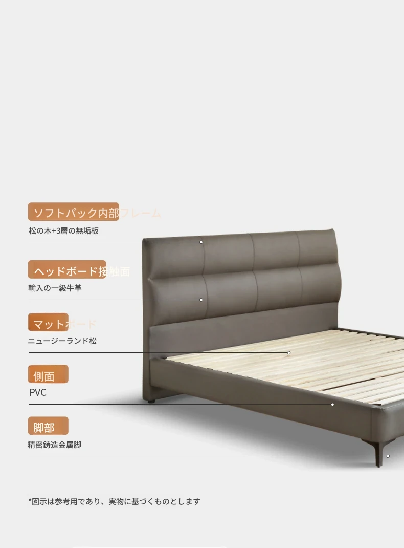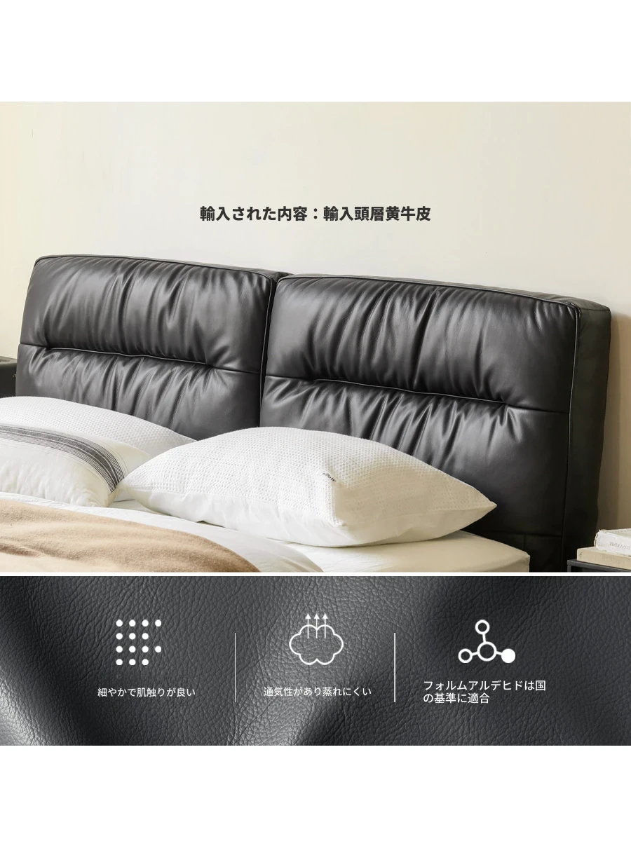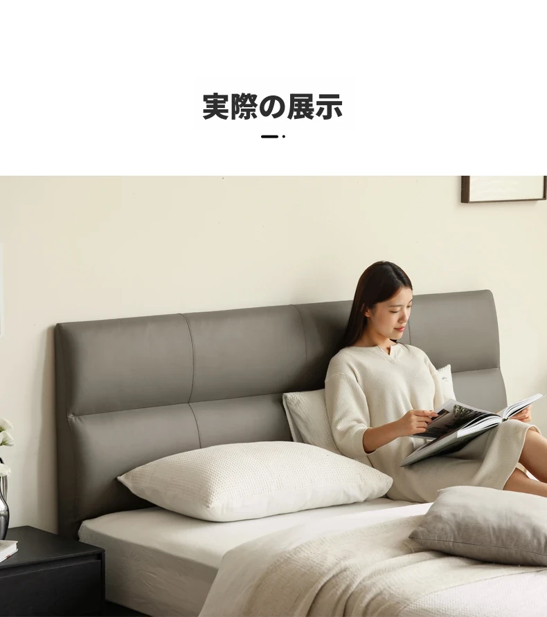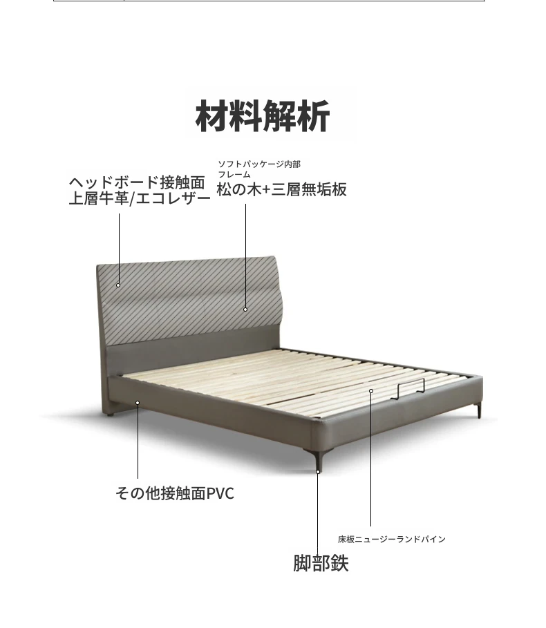 源氏木语 グレー 本革 ベッド モダン シンプル 主寝室用 ダブルベッド ラグジュアリー 高級 レザーソフト パッキングベッド 最高の眠りを提供する贅沢なデザイン!