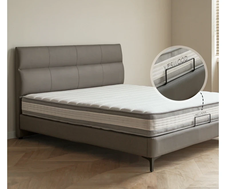 (浮遊タイプ)エコクラウドレザー薄霧灰ベッド+マットレス(22CM厚J153中程度H3) S07B71