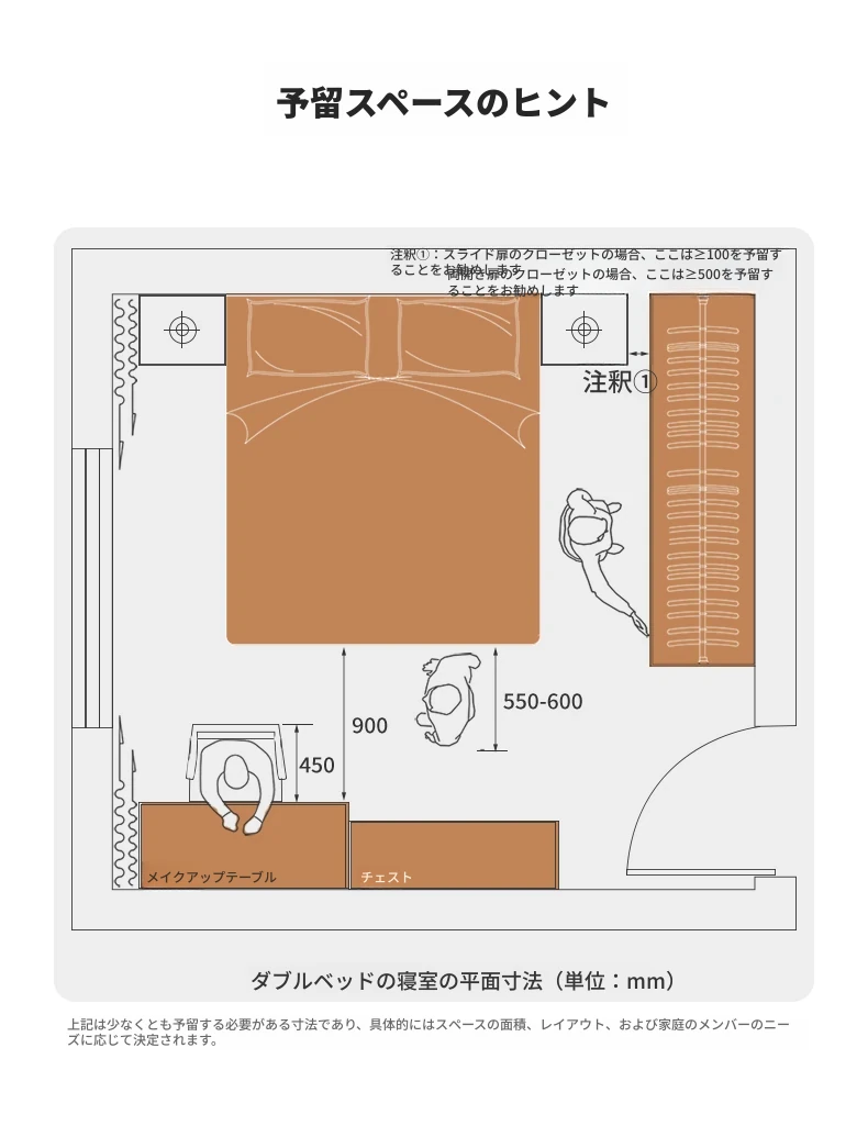 サイズオプションは内寸で、実際の占有スペースは外寸で計算
