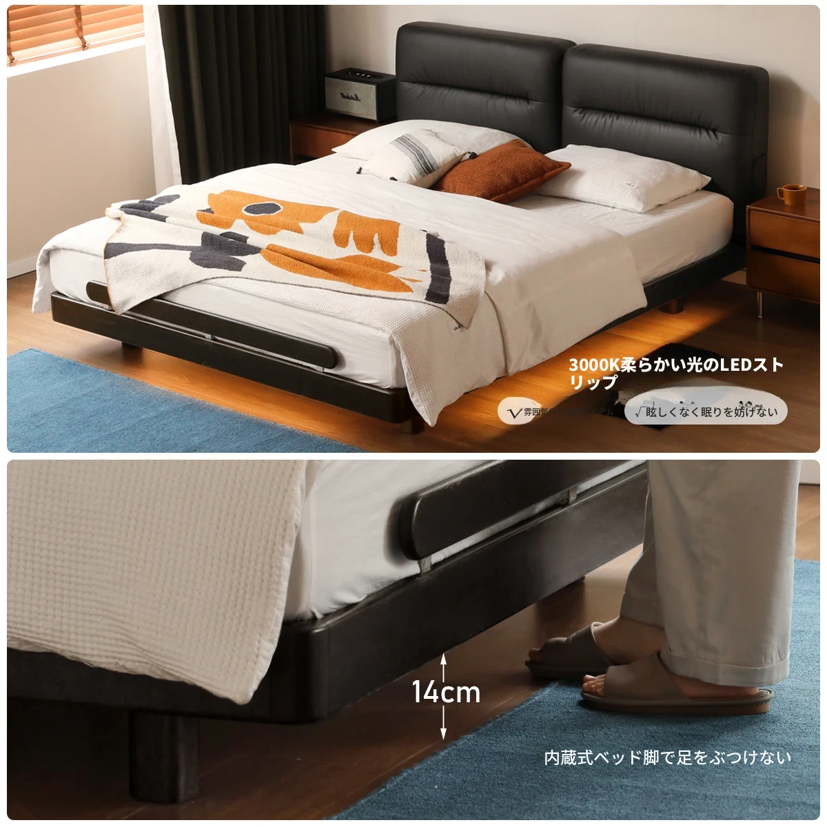 (浮遊タイプ)エコクラウドレザー薄霧灰ベッド S07B71