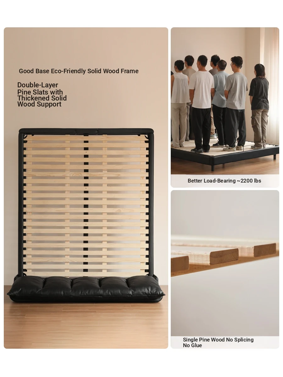 Leather black soft bag bed + mattress (8.66in thick J56 hard H2)S07B234