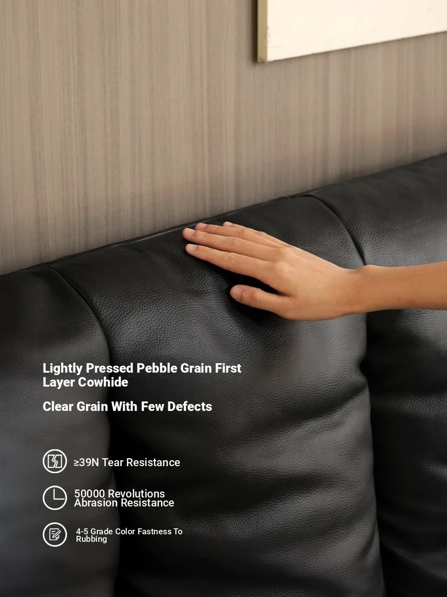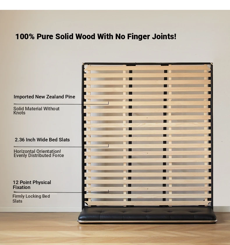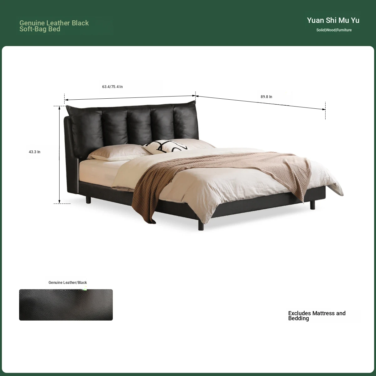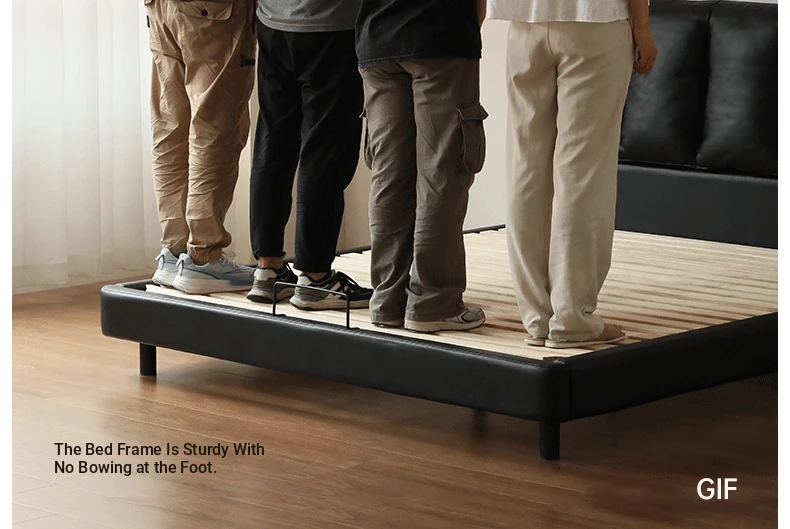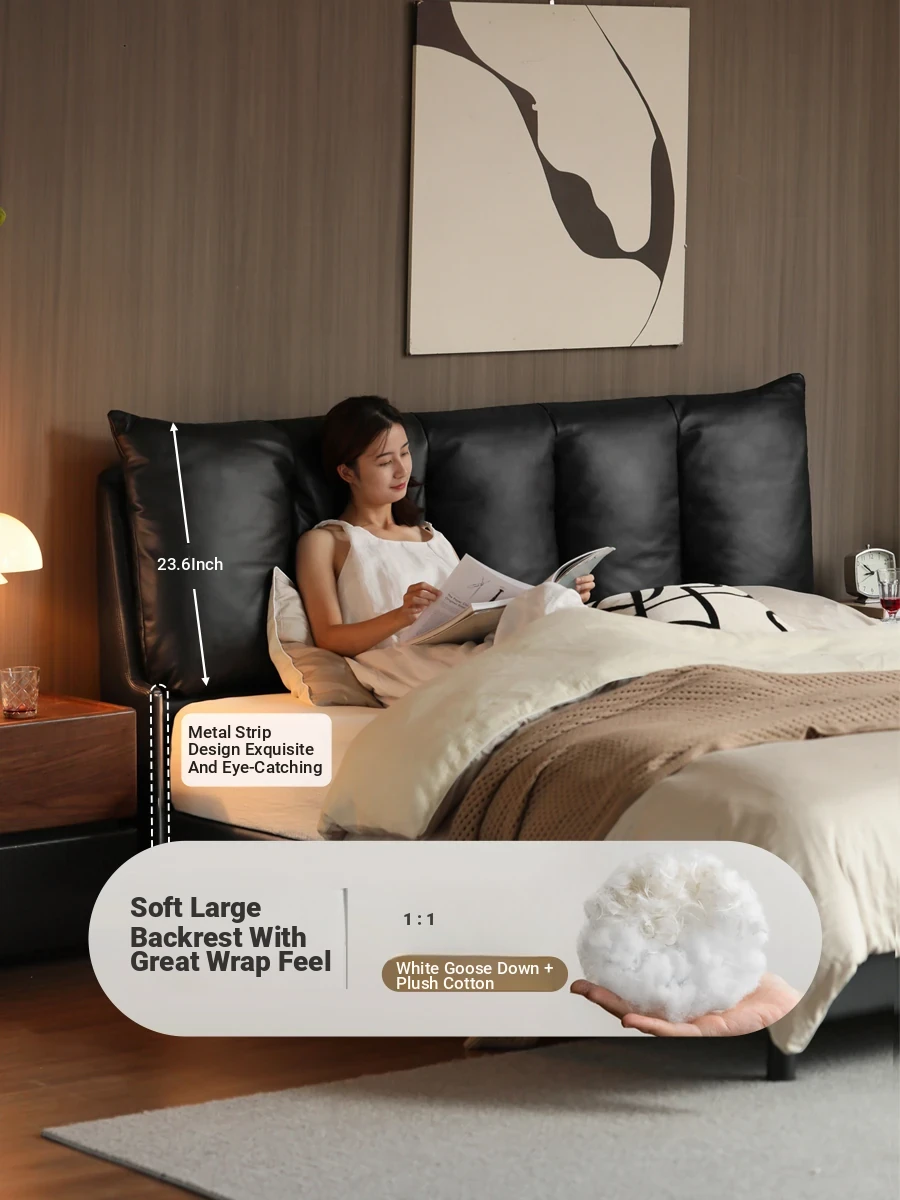 Genji Wood Luxury Genuine Leather Bed - Stylish Black Upholstered Design for Master Bedrooms, Italian Chic Vintage Double Bed, Perfect for Upscale Homes