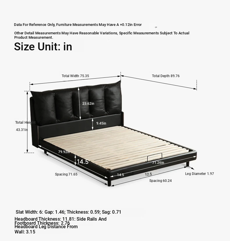 Leather black soft bag bed S07B234