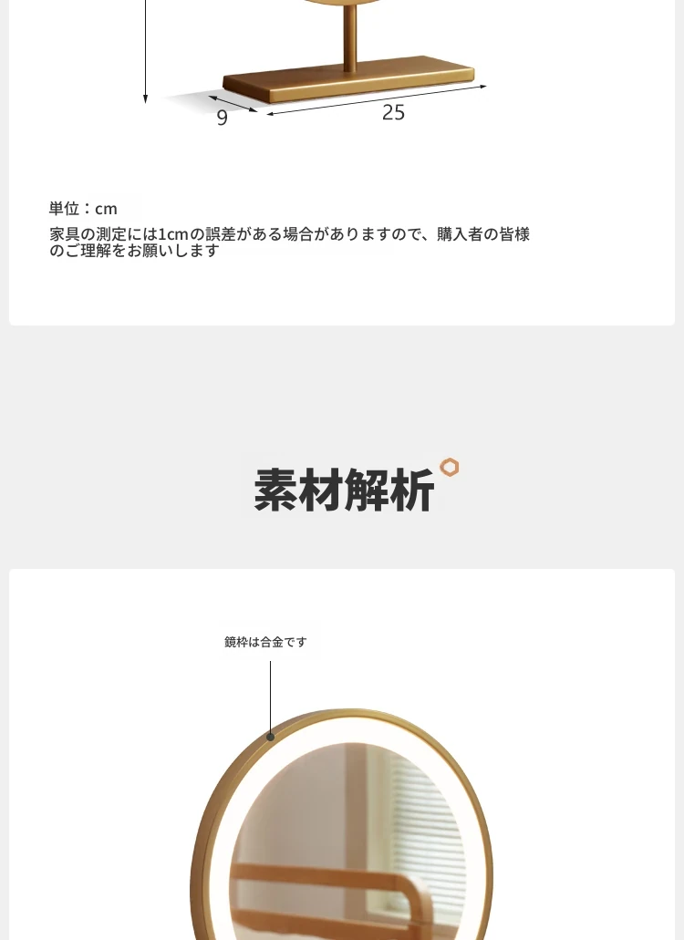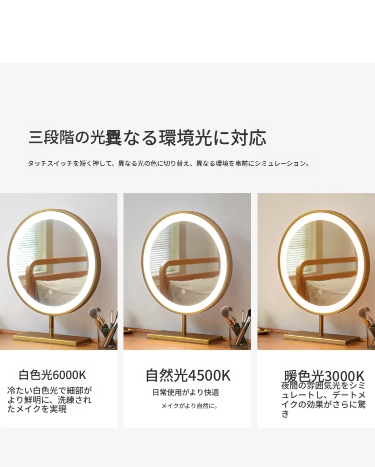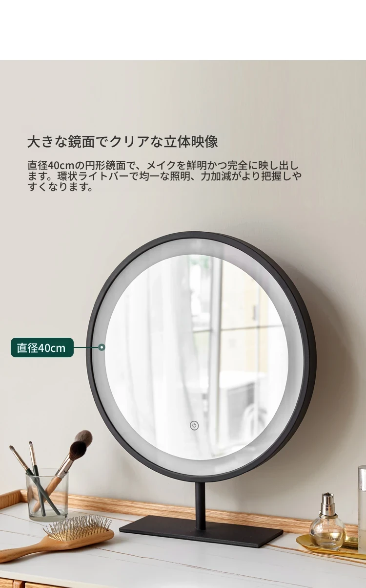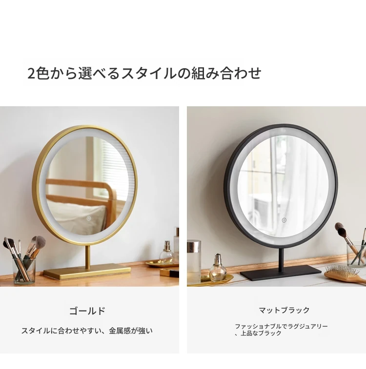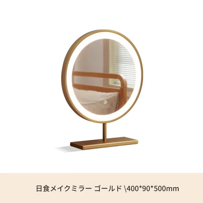 源氏木语のラグジュアリーな卓上化粧鏡 - LEDライト付きの円形メイクアップミラーで、家庭での美しさを引き立てるアイテム!おしゃれなデザインで、毎日のメイクをもっと楽しく!