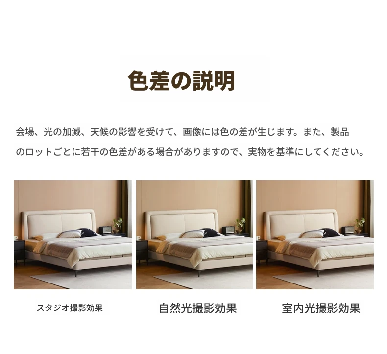源氏木语本革ベッド|モダンシンプルデザイン|ダブルベッド|クリーム風仕上げ|白色均一縁|牛革製|快適な主寝室を演出する贅沢な一品!