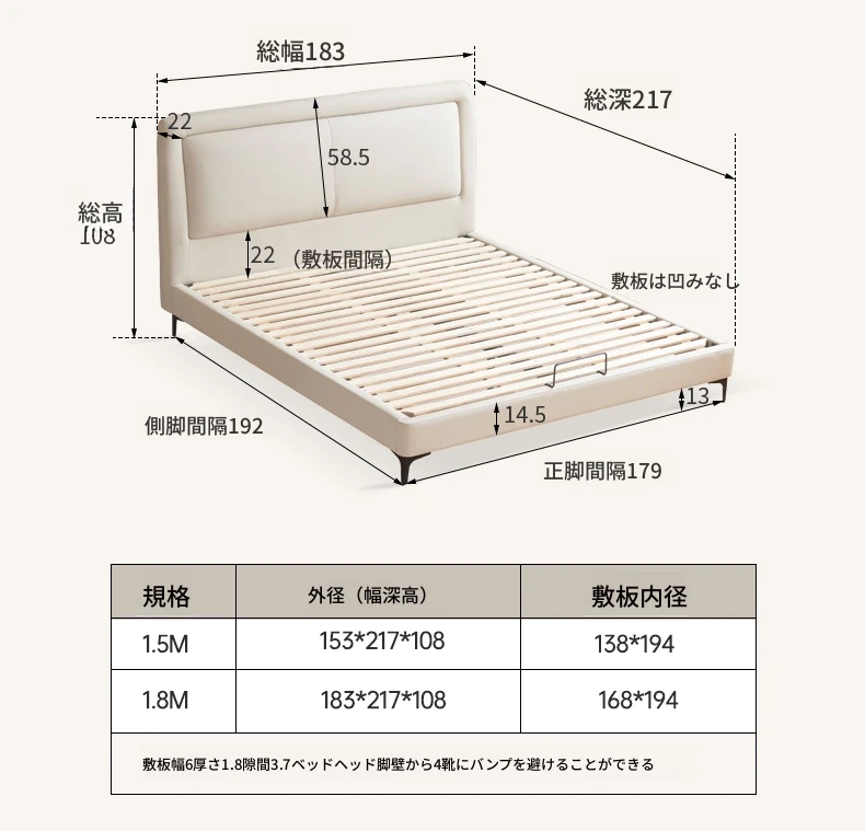 真皮ソフトパッケージベッド+マットレス(厚さ22cm J56)S07B182
