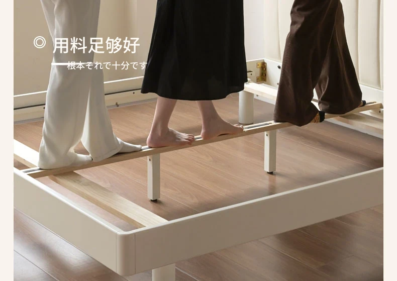 源氏木语の天然木製ベッド - クリーミーな風合いのオーク材フローティングベッド!シンプルでモダンなデザイン、柔らかいファブリックパッケージ。夜間でも優しく光るホワイトの優雅なベッドで、快適な夢の世界へ!