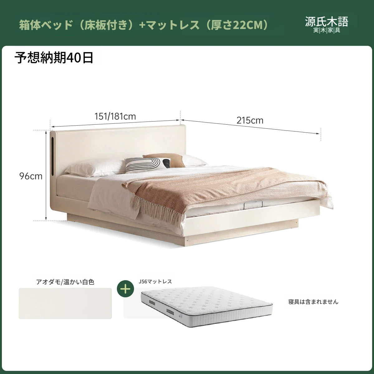 Warm white low-lying box bed (no bottom plate) + mattress (8.66in thick J56 hard H2)Y211B21