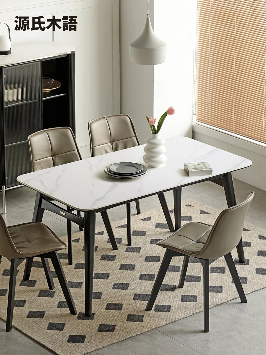 源氏木语の無垢材岩板ダイニングテーブル - オーク材の軽やかなラグジュアリー!シックな黒色のイタリアンスタイル、スタイリッシュでモダンな長テーブル。お家での特別なひとときを演出します。