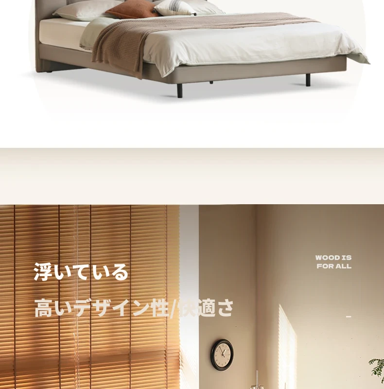 源氏木语 本革を使用したモダン軽奢ベッド|主寝室にぴったりのダブルベッド|シンプルで浮遊感漂うデザインのソフトパッケージベッド