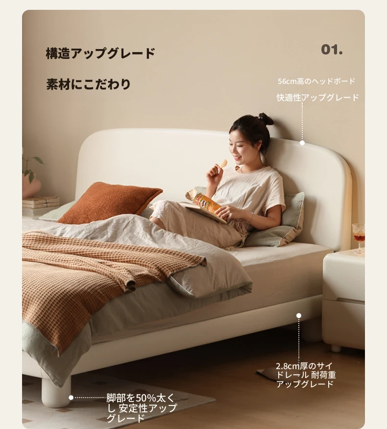 源氏木語のナチュラル木製ダブルベッド|優雅なクリーム色の主寝室セット!高品質な無垢材で作られた、心地よい眠りを提供する美しい家具コレクション。ホワイトのコンビネーションで、洗練された空間を演出します!