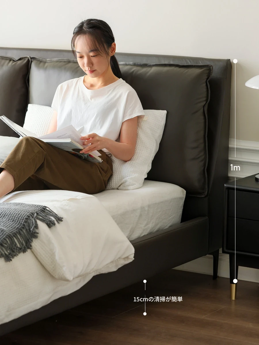 本革ブラックソフトバックベッド+マットレス(厚さ22CM J56標準H3)S07B02