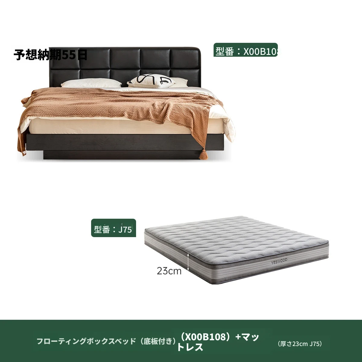浮遊ボックスベッド-(有床板)+マットレス(厚さ23cmJ75)X00B108(1.5ヘッドボード4列ソフトパック 1.8ヘッドボード5列)