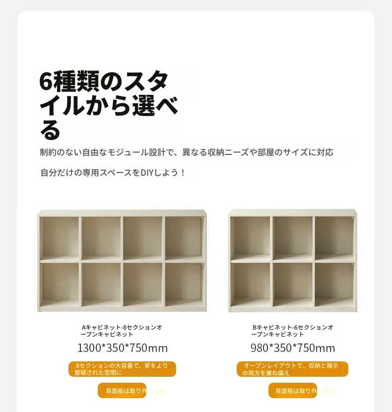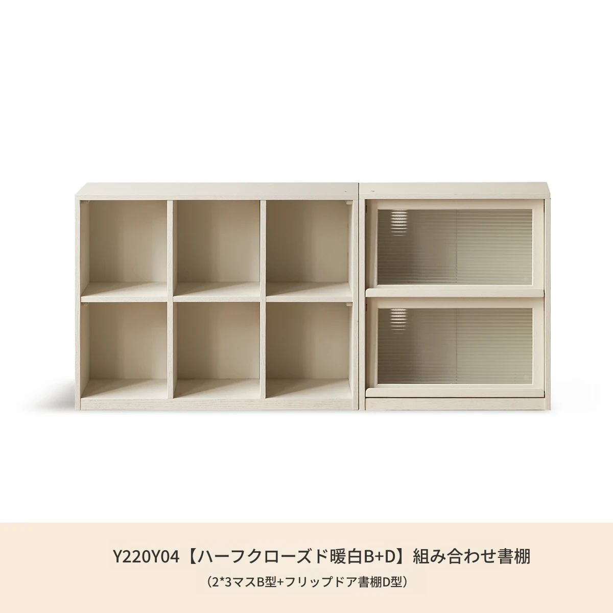 (半封闭暖白)B+D接合型書棚(2*3格B型+引き戸収納D型)Y220Y04