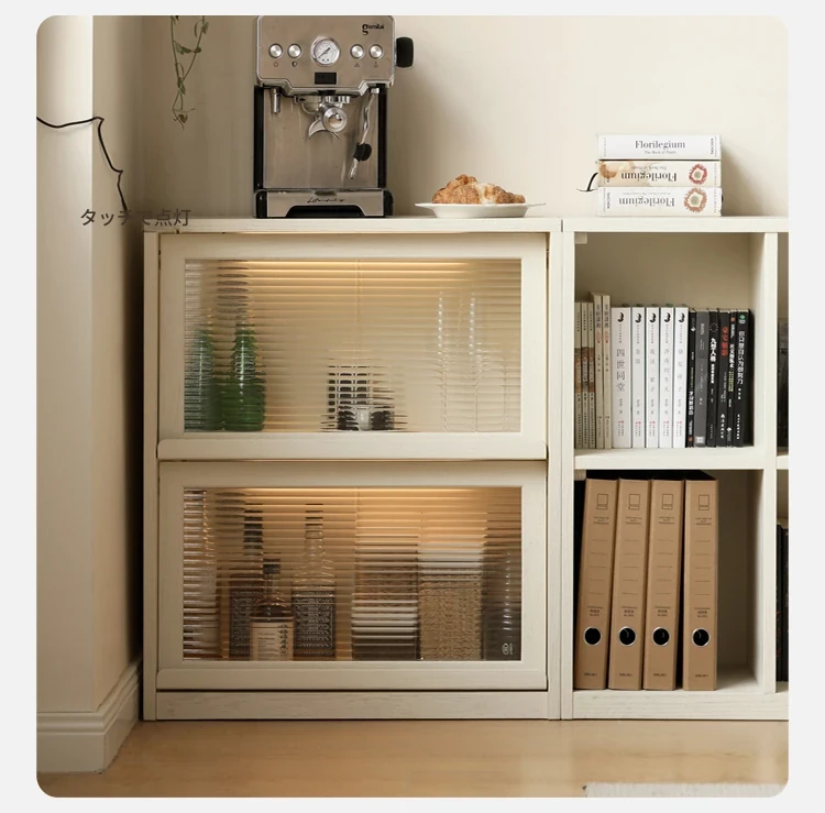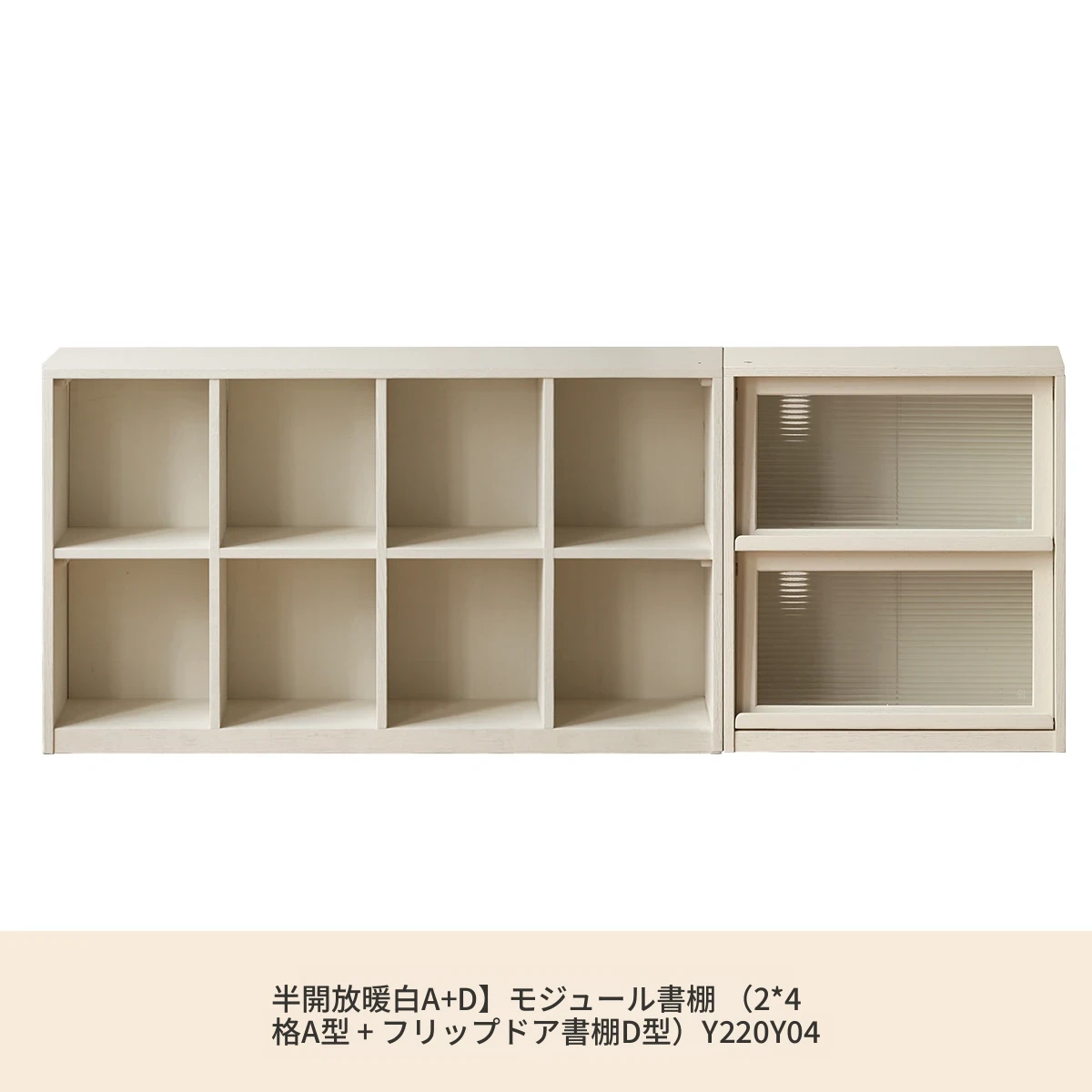(半封闭暖白)A+D接合型書棚(2*4格A型+引き戸収納D型)Y220Y04