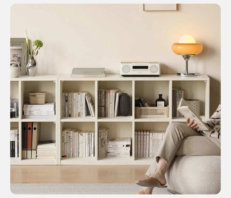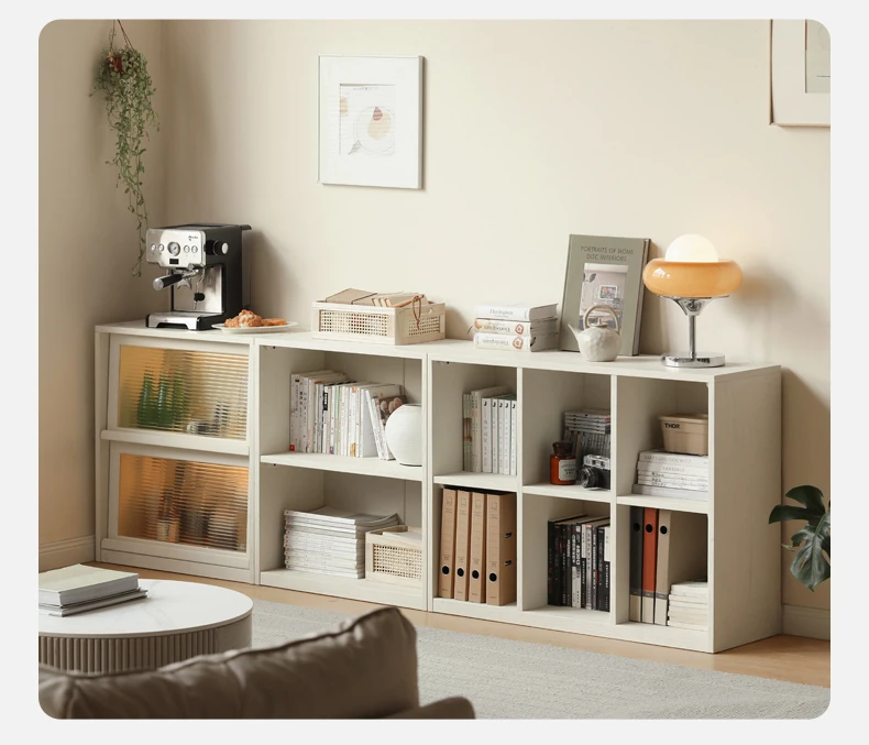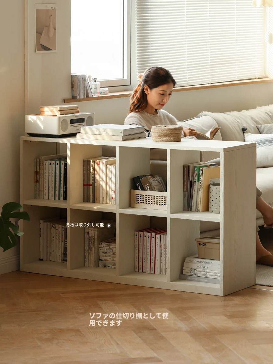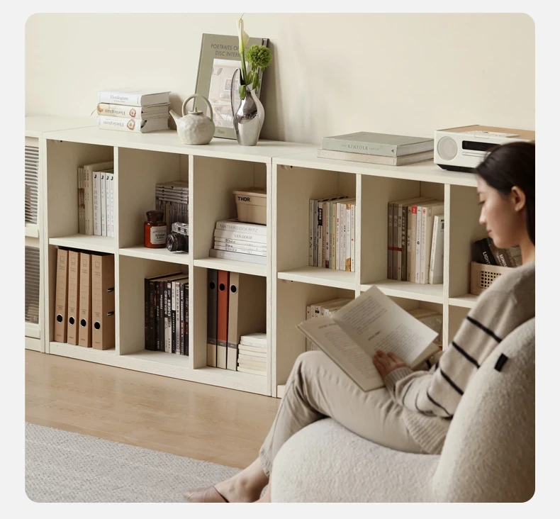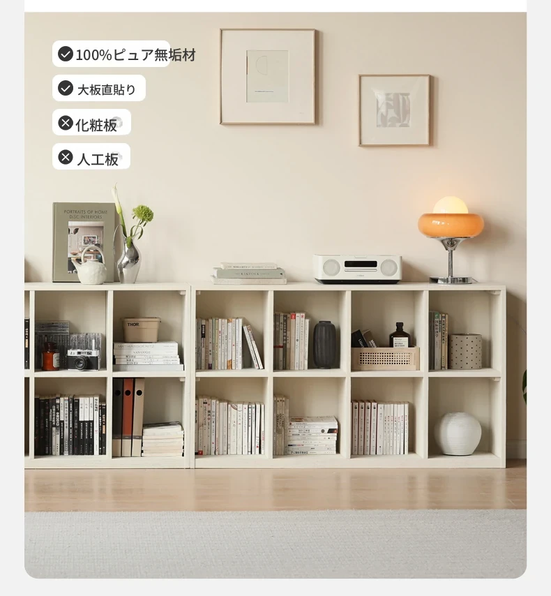 源氏木语 ナチュラル木製書棚 - クリーミーな風合いで魅せるモダンシンプルなホワイトディスプレイキャビネット。自由に組み合わせ可能な収納棚で、おしゃれな空間を演出!
