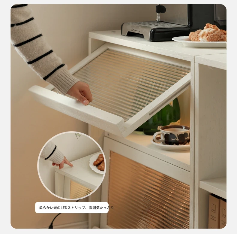 (半封闭暖白)D型引き戸収納(660*350*750mm)Y220Y04