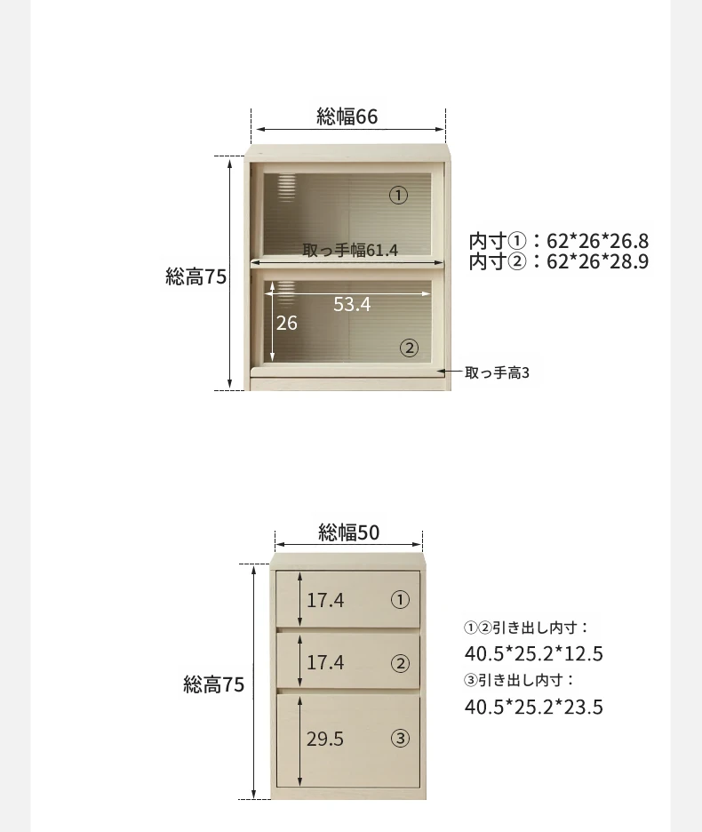 (半封闭暖白)E型引き出し収納(500*350*750mm)Y220Y04