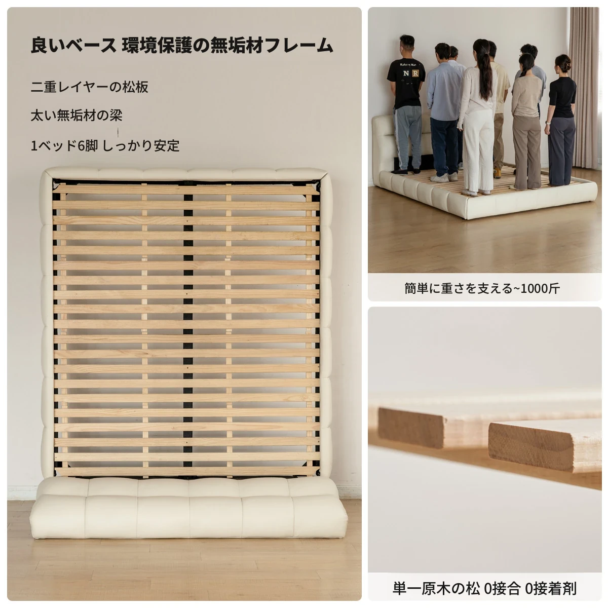 源氏木語本革モダンシンプル大人寝室用ベッド|クリーム風雲ドームデザイン|ふんわりソフトパッケージ|心地よいダブルベッド