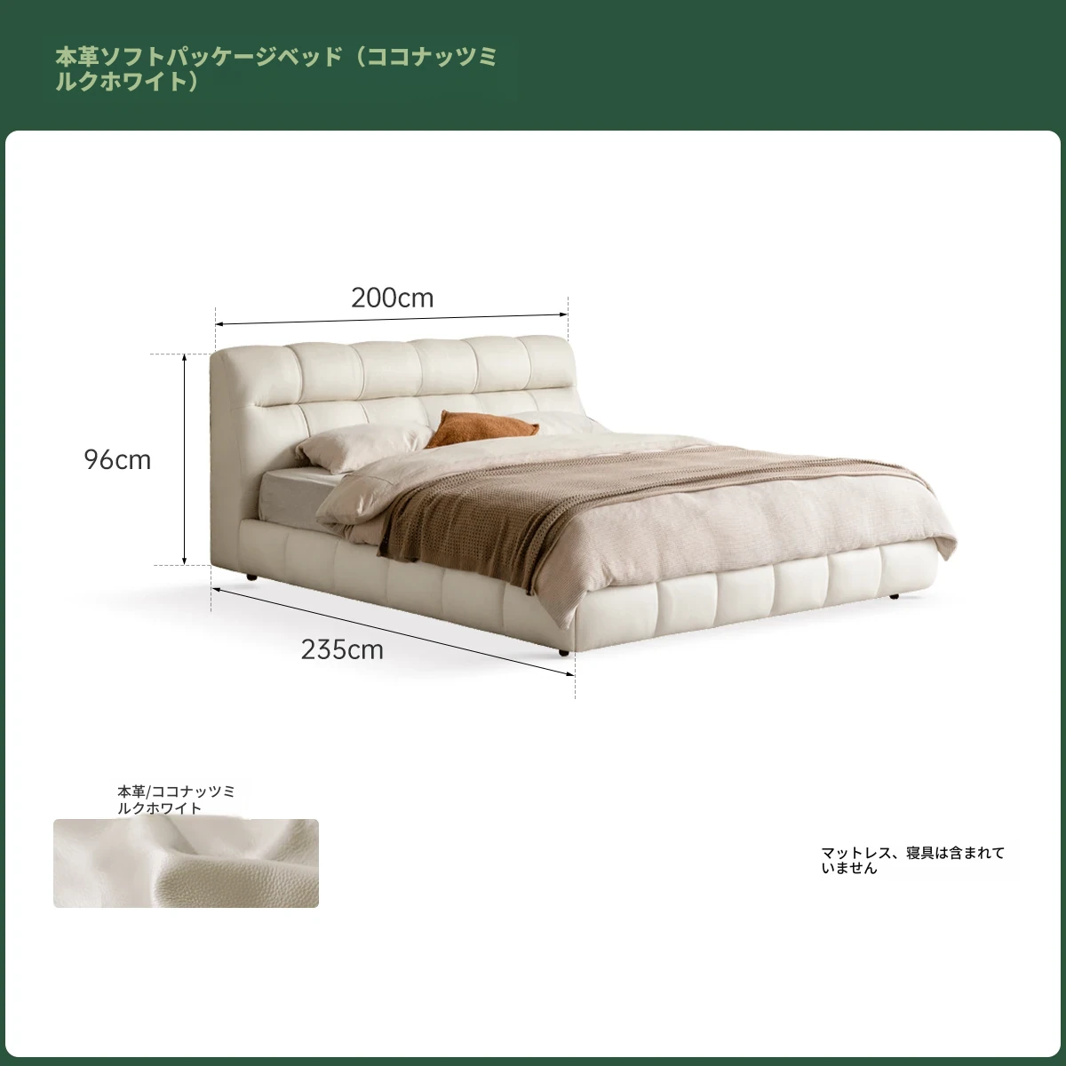 真皮ソフトパックベッド(ココナッツミルクホワイト)+マットレス(厚さ22cm、やや硬めH2)S07B216