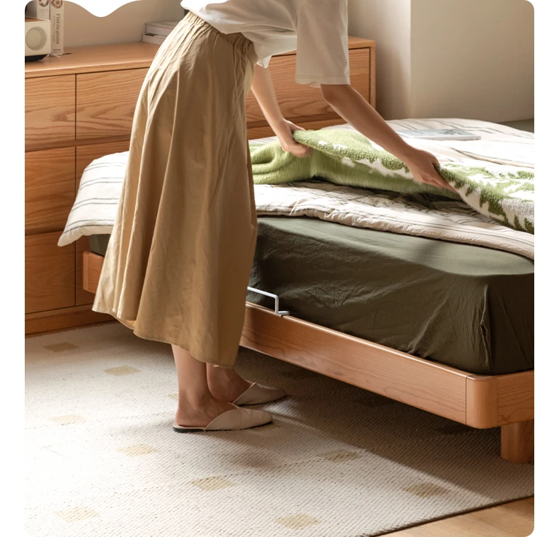 源氏木語のチェリーウッド無頭ボード榻榻米スタイルのダブルベッド|コンパクトな小型住居にもぴったり!洗練されたデザインで、温もり溢れるお部屋を実現します。