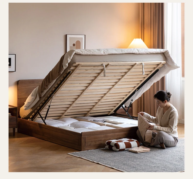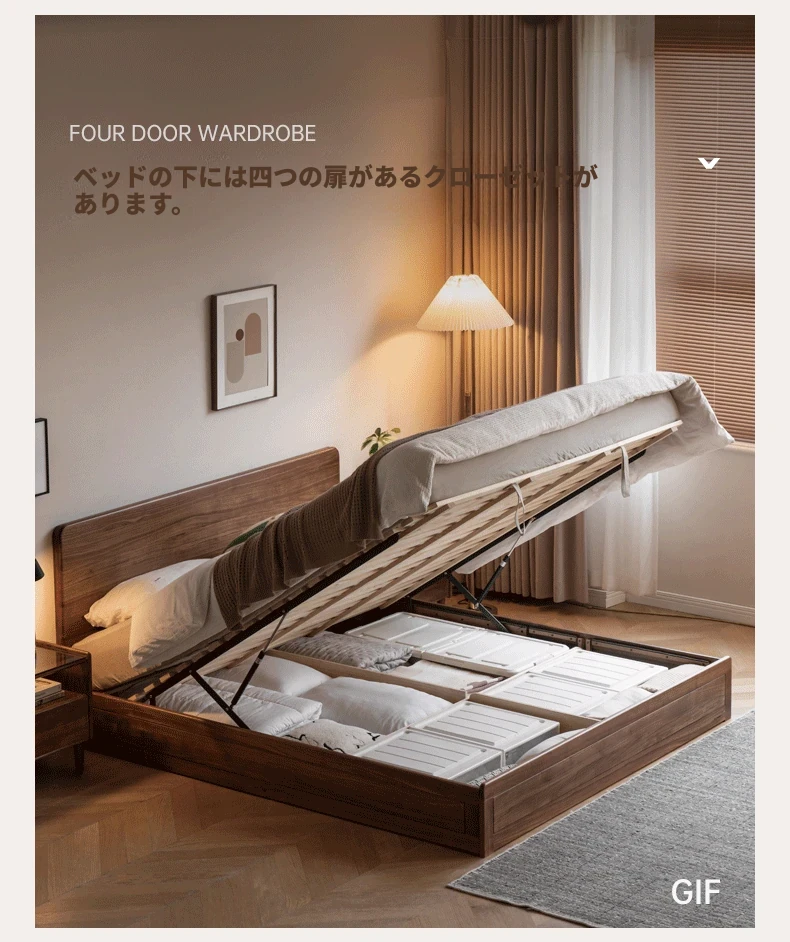 源氏木语モダンブラックウォールナットのクイーンサイズボックスベッド – 小スペースにぴったりな収納力抜群の高箱ベッド!スタイリッシュなデザインで、快適な眠りをサポートします。