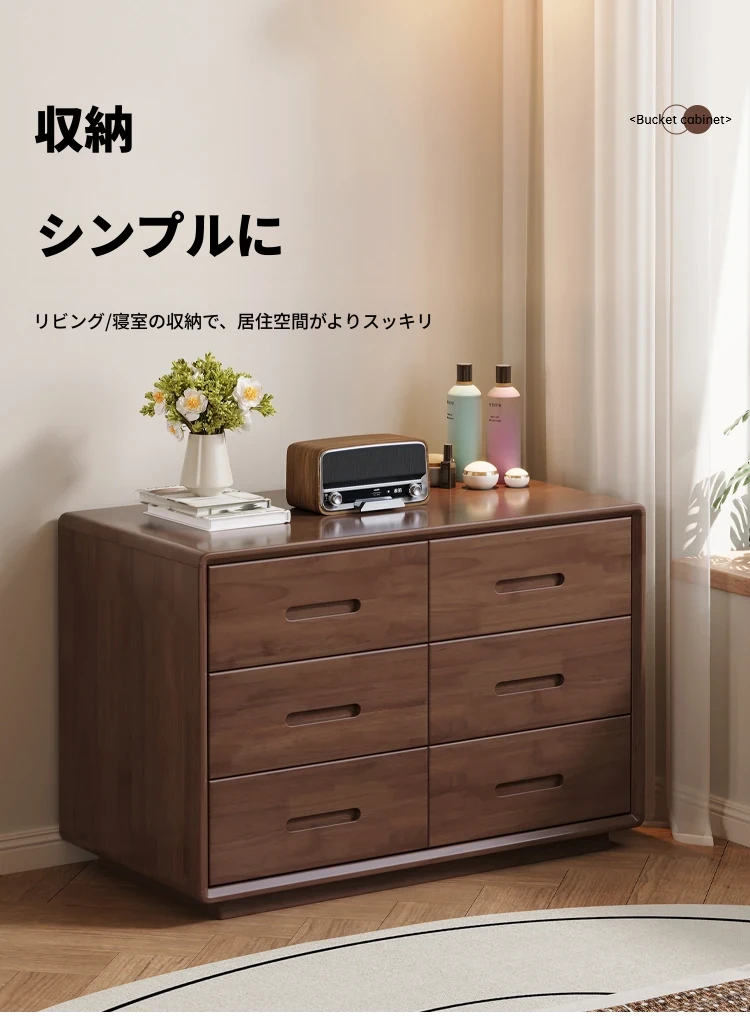 天然木材使用!シンプルモダンなデザインの6段引き出しチェスト|ベッドサイドやリビングに最適な大容量収納|お部屋をスッキリ整理!