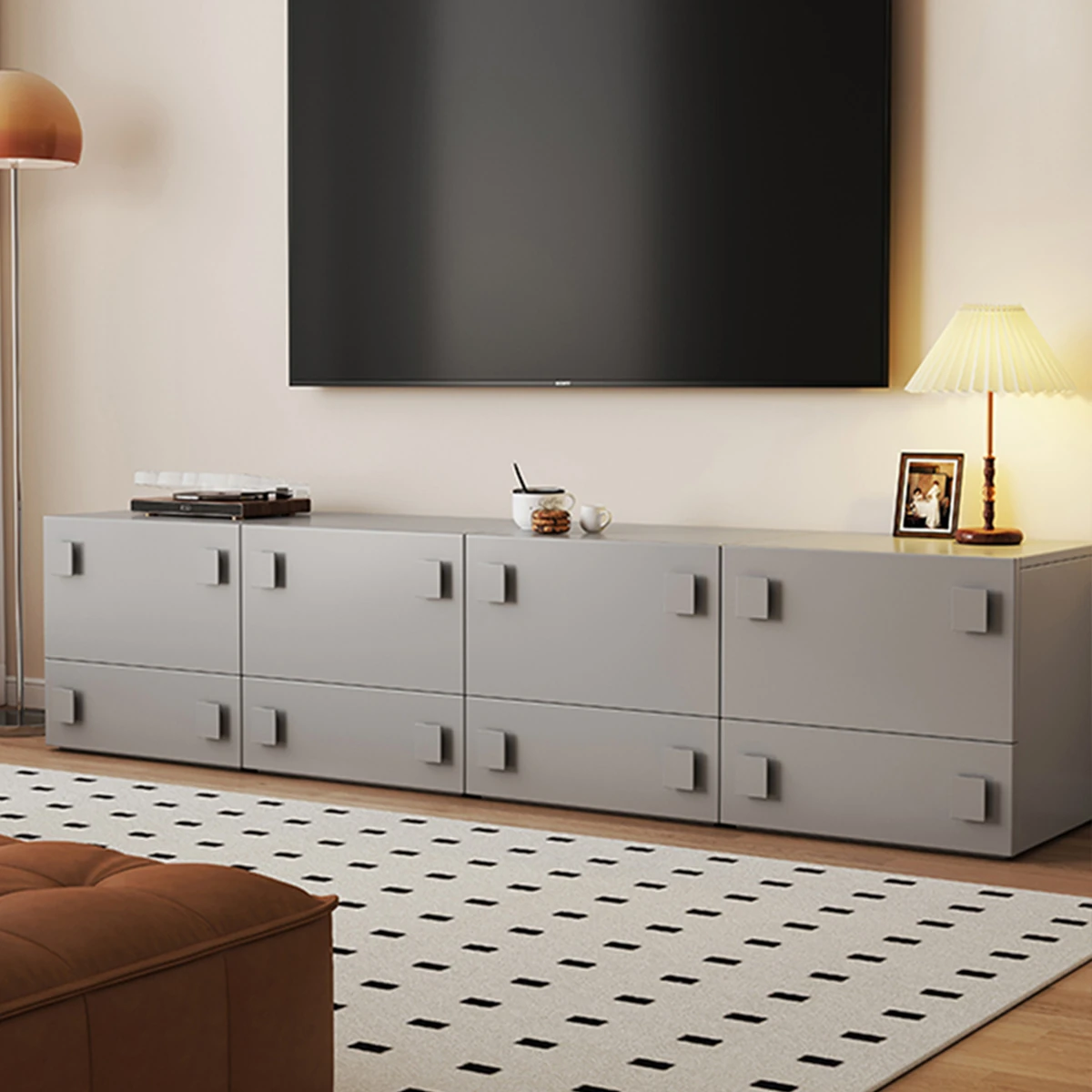 北欧スタイルの無垢材フロアキャビネット|空間を有効活用するモジュール式カーメンキャビネット|リビングにぴったりの壁寄せテレビボード|小部屋でも使える収納引き出しキャビinet