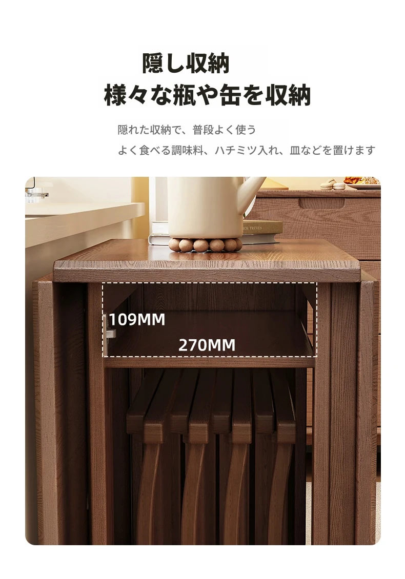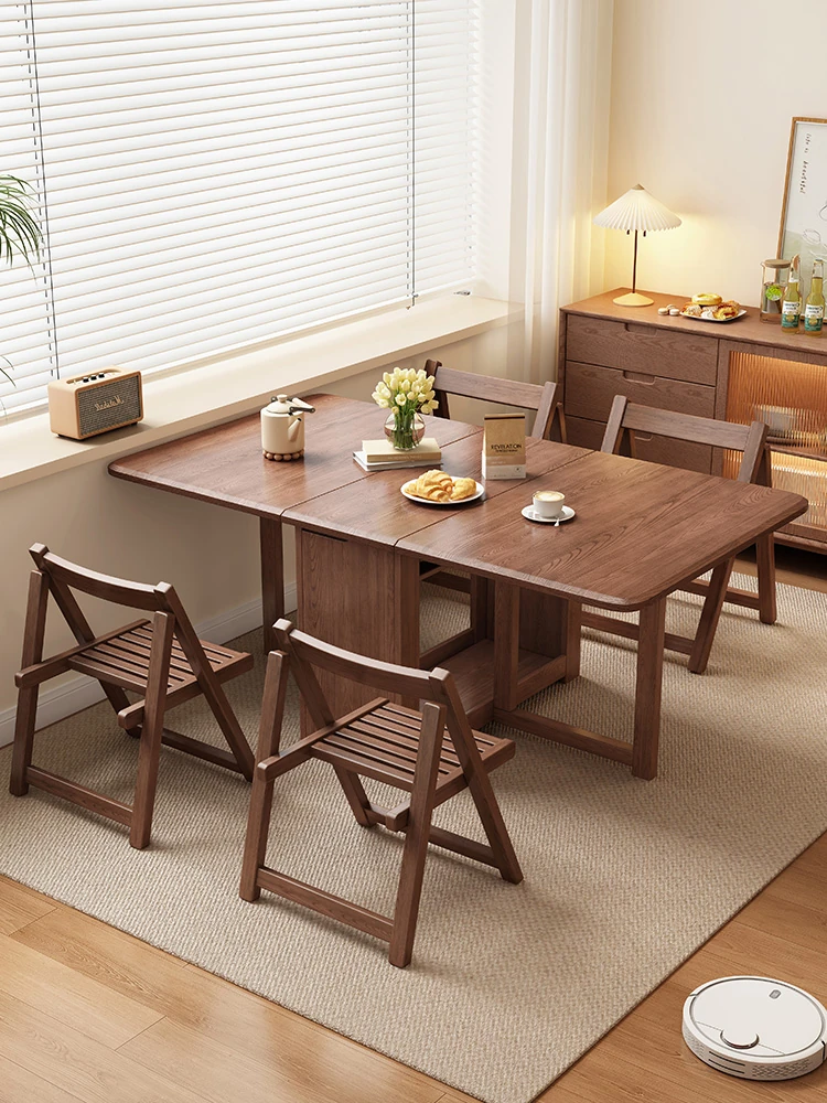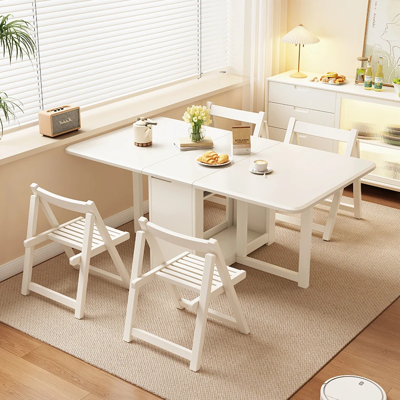 全木製 折りたたみ式 ダイニングテーブル 小型住宅向け 長方形 伸縮可能 キャスター付き テーブルとチェアのセットで、スペースを有効活用し、食事の時間をもっと快適に!