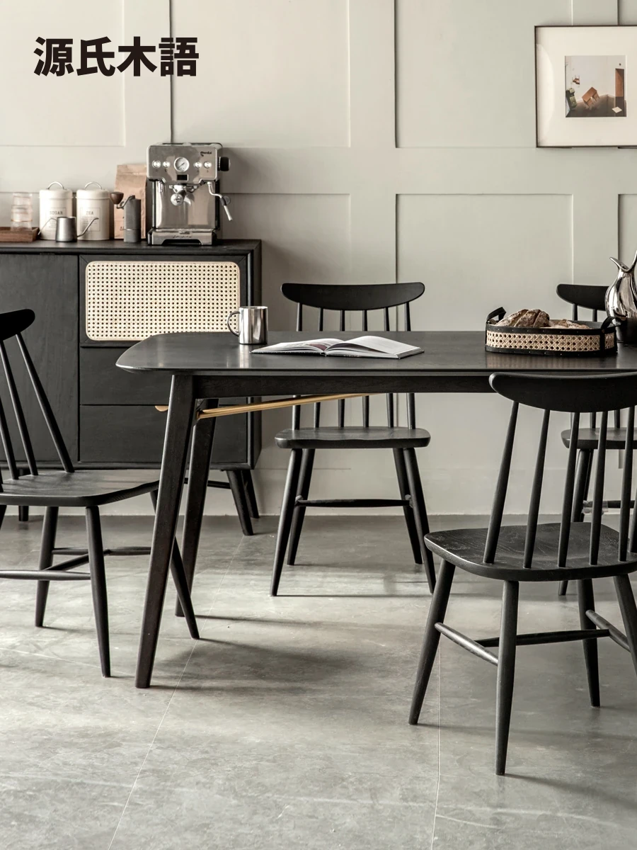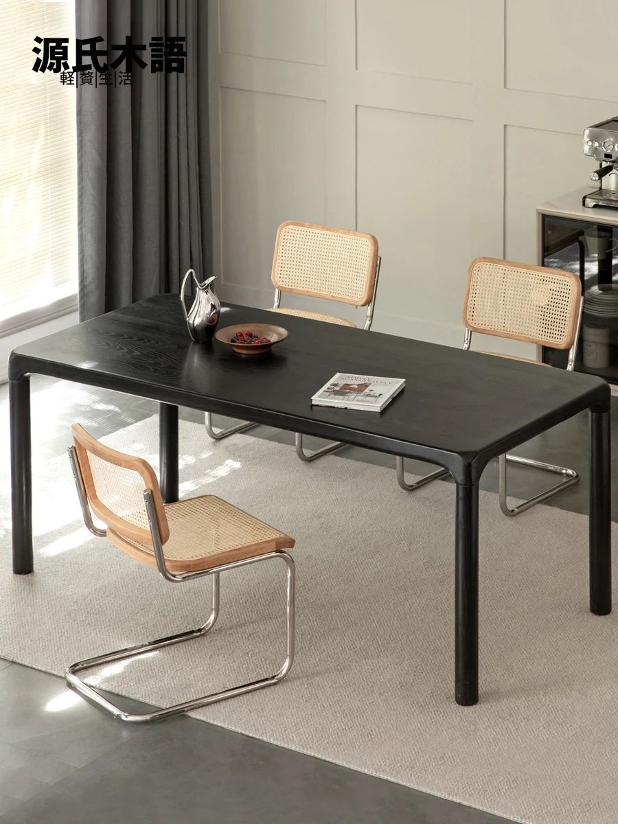 源氏木语 北欧風 シンプルデザイン 天然木ダイニングテーブル ブラック仕上げ ホワイトアッシュ 家庭用 食事に最適 コーディネートしやすい デザイナーズ家具