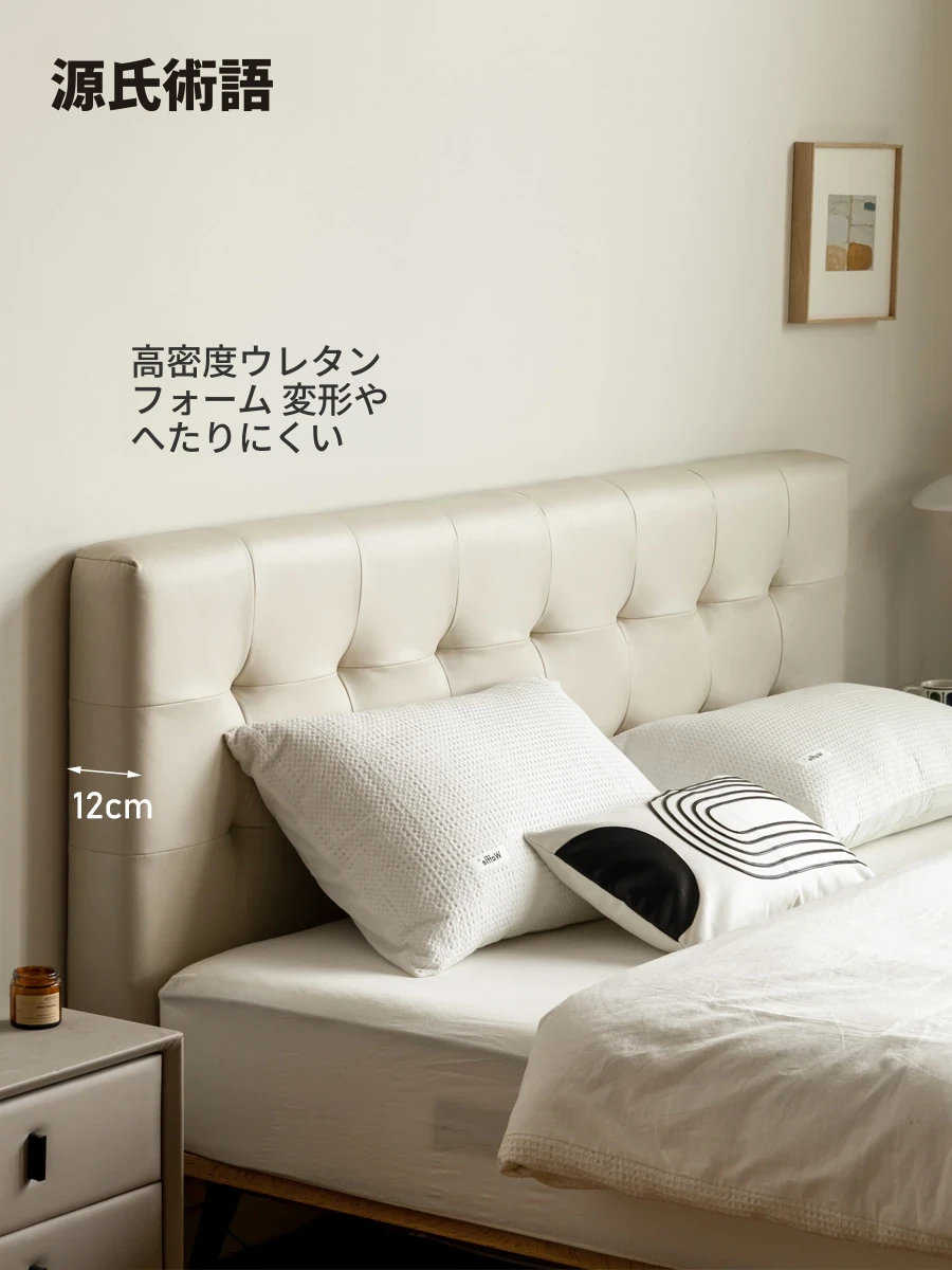 源氏木語の布製ベッド - モダンでシンプルなデザイン、家族に最適なダブルベッド。クリーミーなホワイトカラーで、おしゃれな主寝室を演出するソフトパッケージベッドです。快適な眠りをお届けします!