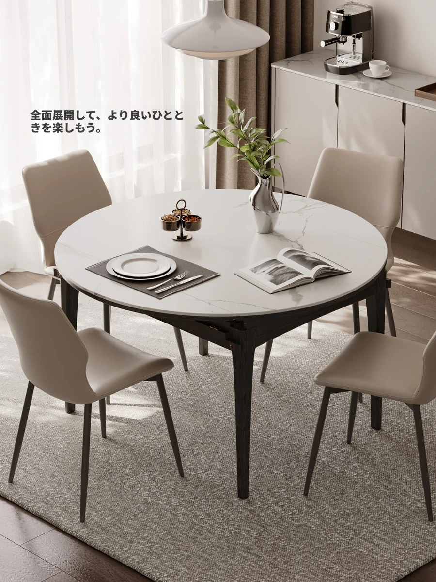 源氏木語の高級感あふれる岩板ダイニングテーブル|おしゃれな円形デザイン|小スペースにもぴったりな折りたたみ式天板|家族や友人との楽しい食卓を演出する天然木ダイニングセット