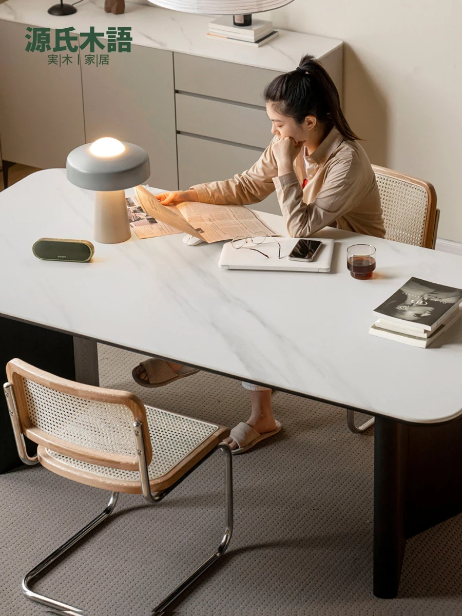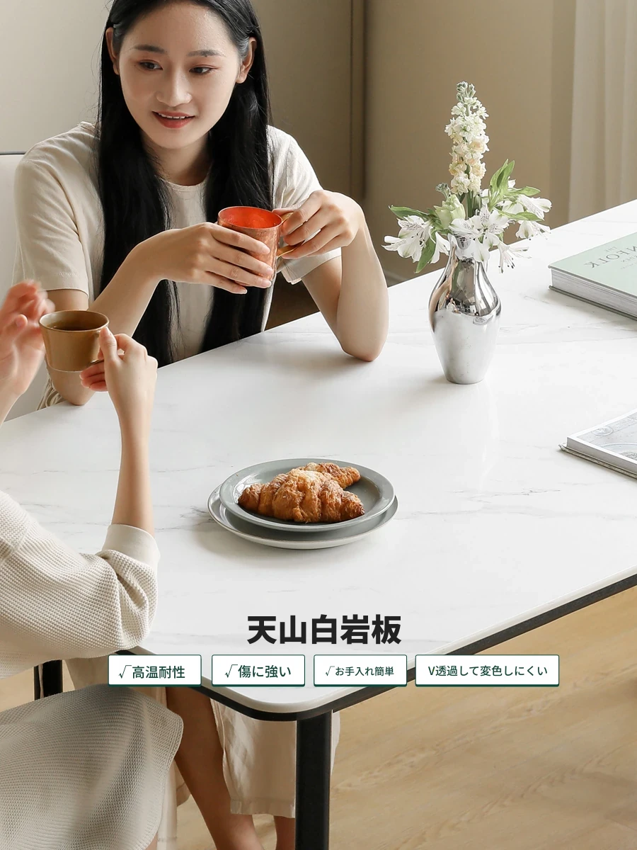 源氏木语のブラック軽奢岩板ダイニングテーブル | 壁寄せスタイルのスラントレッグデザイン | 高品質無垢材使用 | おしゃれで機能的な家庭用テーブルセット