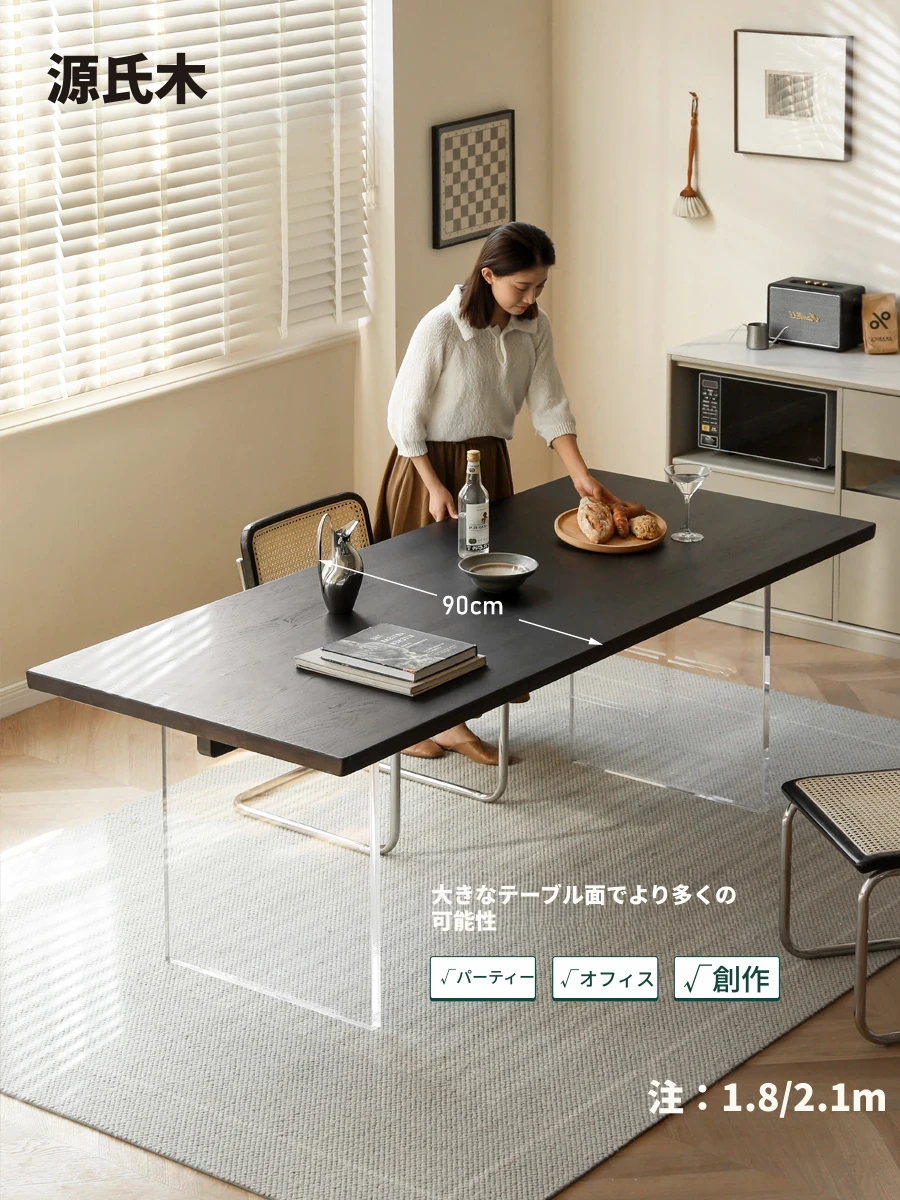 源氏木语 高級感溢れる無垢材ダイニングテーブルセット アクリル浮遊デザイン 侘寂スタイル ブラックエレガントテーブル 軽やかで洗練された食卓を演出