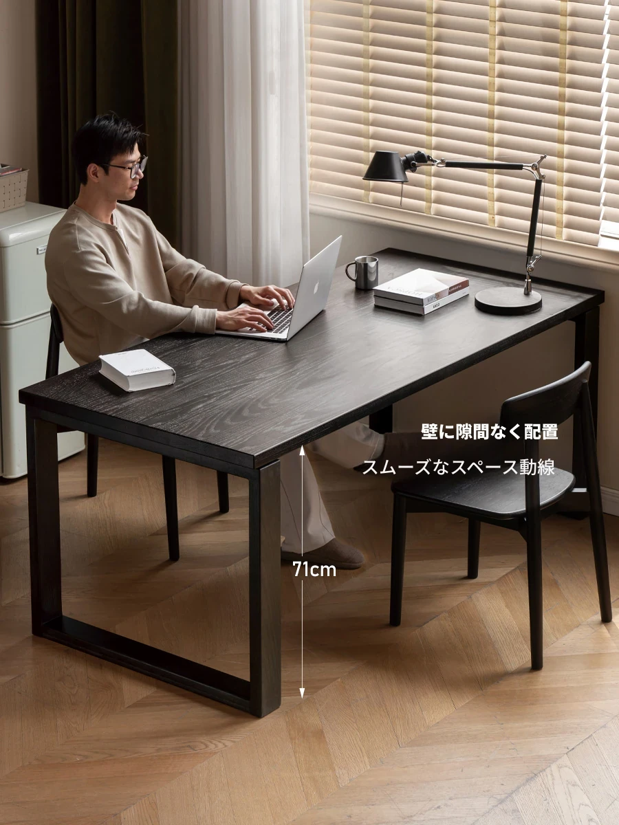 源氏木語の無垢材イタリアンスタイルダイニングテーブル - シンプルでスタイリッシュなブラックデザイン、贅沢感漂う作業台にも最適!