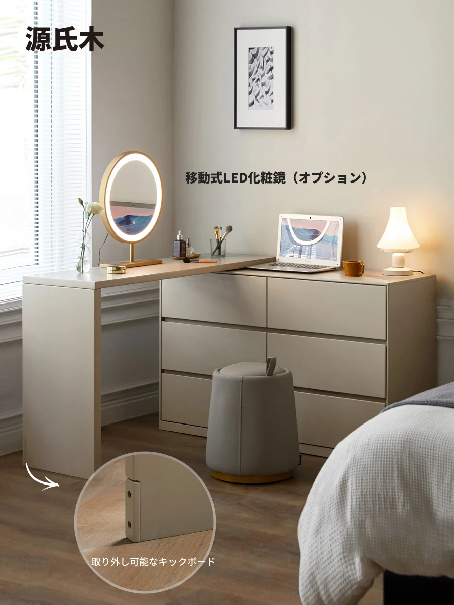 源氏木语多機能チェスト一体型ドレッサー - モダンでラグジュアリーな化粧台、寝室にぴったりなL型コーナー化粧台!美しさと機能性を兼ね備えた理想の空間を演出します。